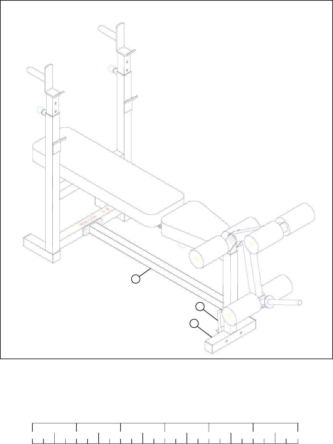 • SECURELY assemble the BENCH FRAME (2) to the UPRIGHT FRAME (1) using two 3/8 X 3” BOLTS (17), one 3/8 X 2-3/