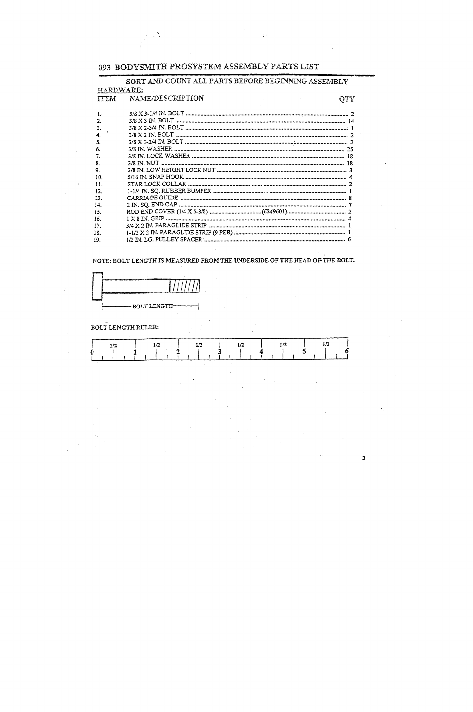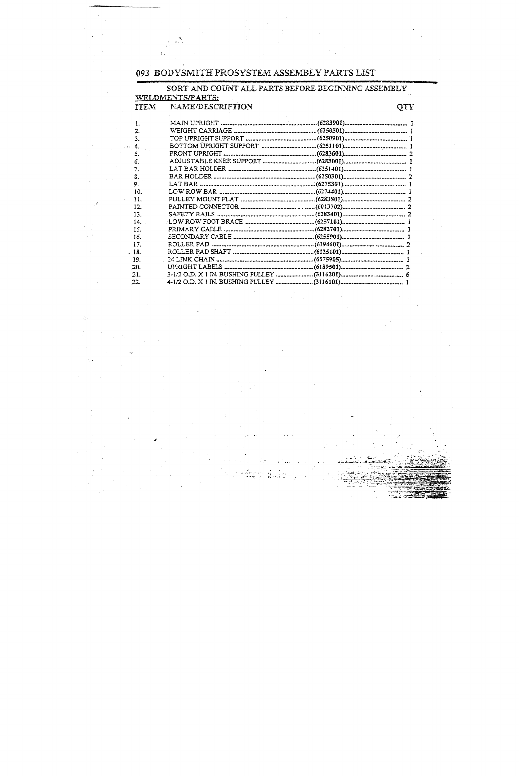 093 BODYSiVfIT~ PROSYSTEM ASSEMBLY PARTS L~ST