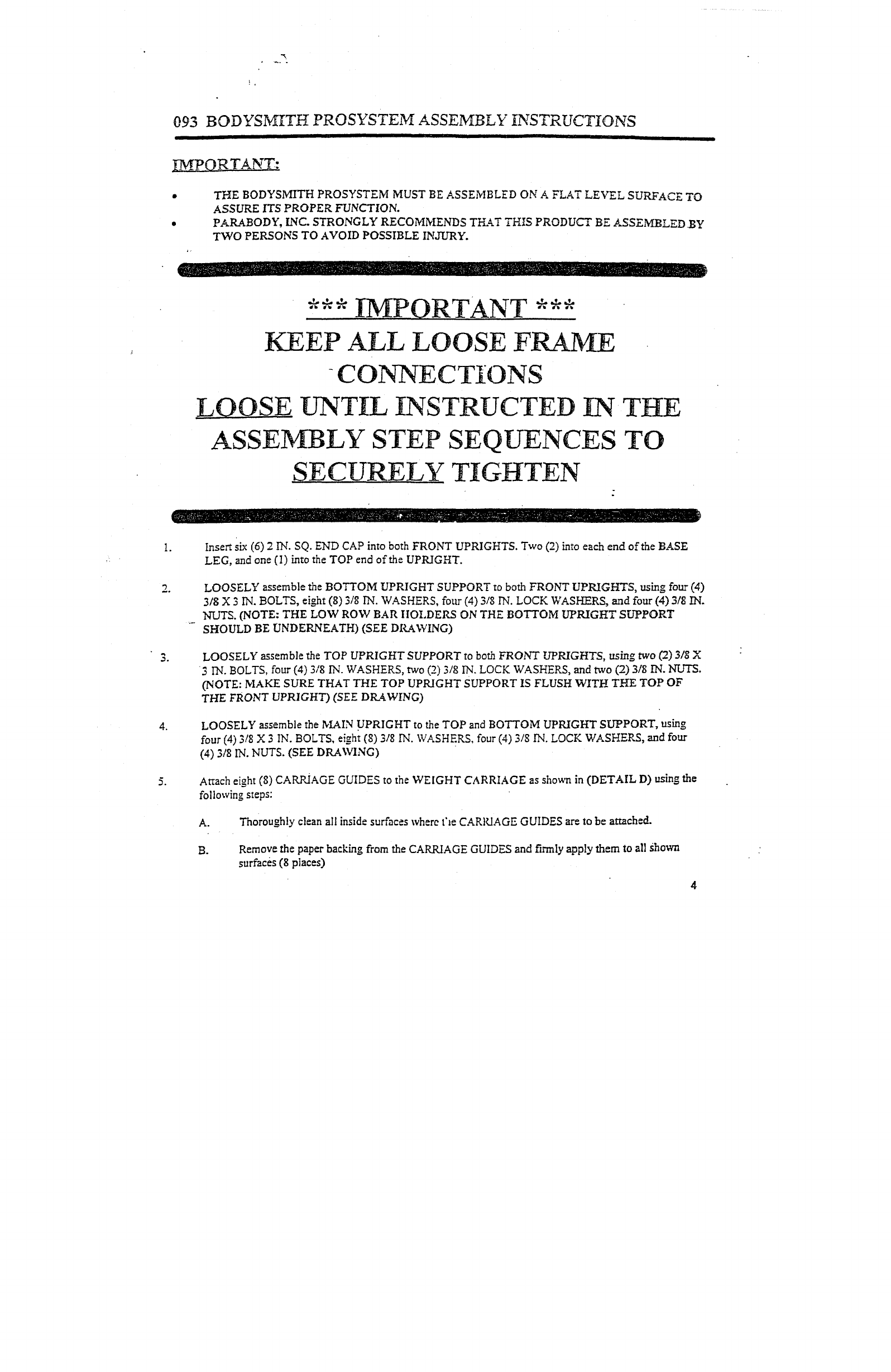 BODYSMiTH PROSYSTEM ASSEMBLY INSTRUCTIONS