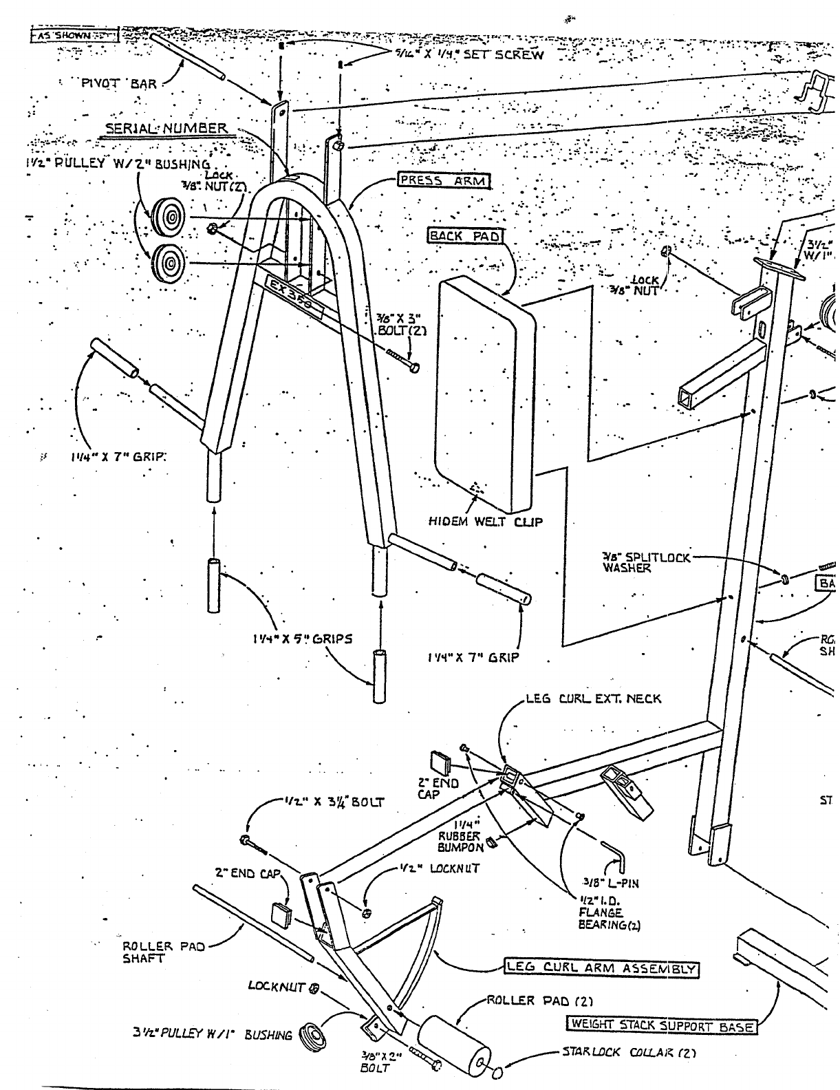 eitherthe LOW ROW PULLEY on the LEG CURL ARM ASSEMBLY or the UPPER PULLEY.