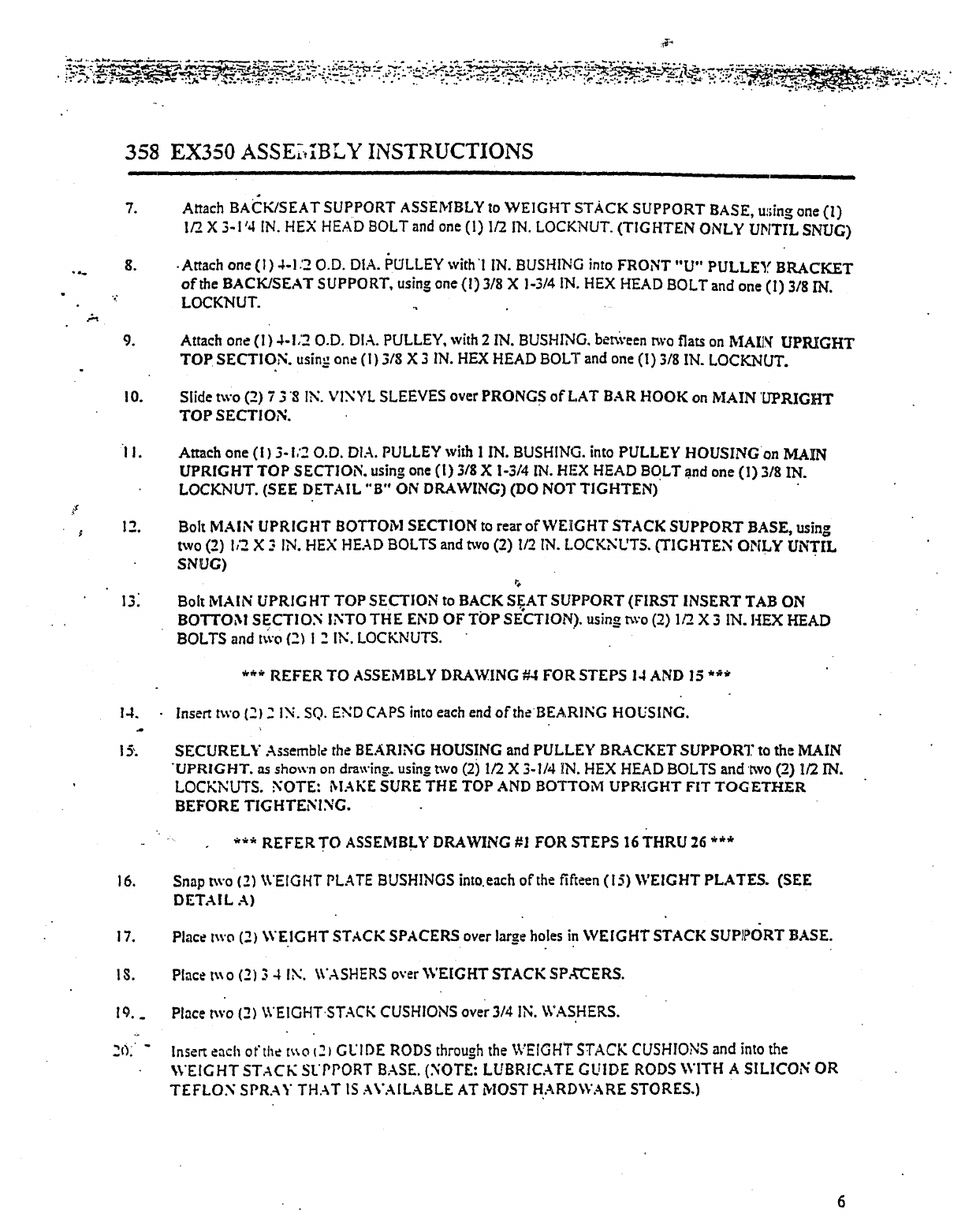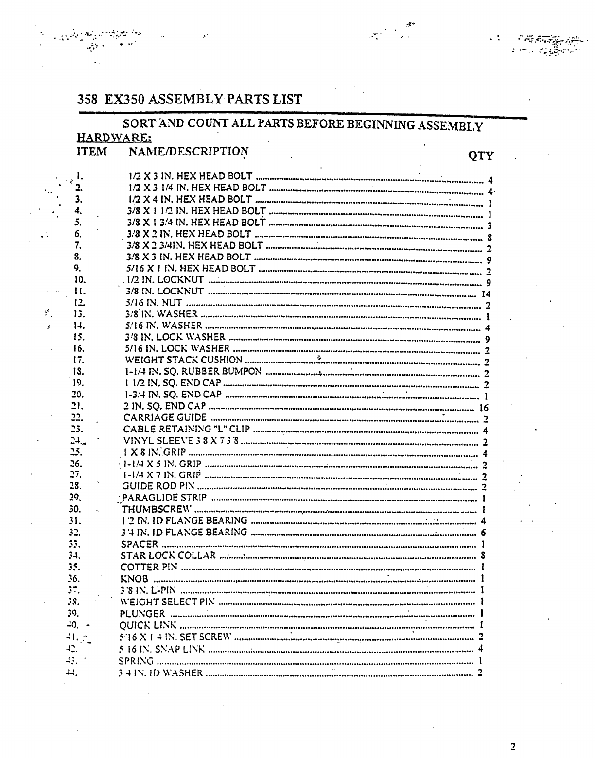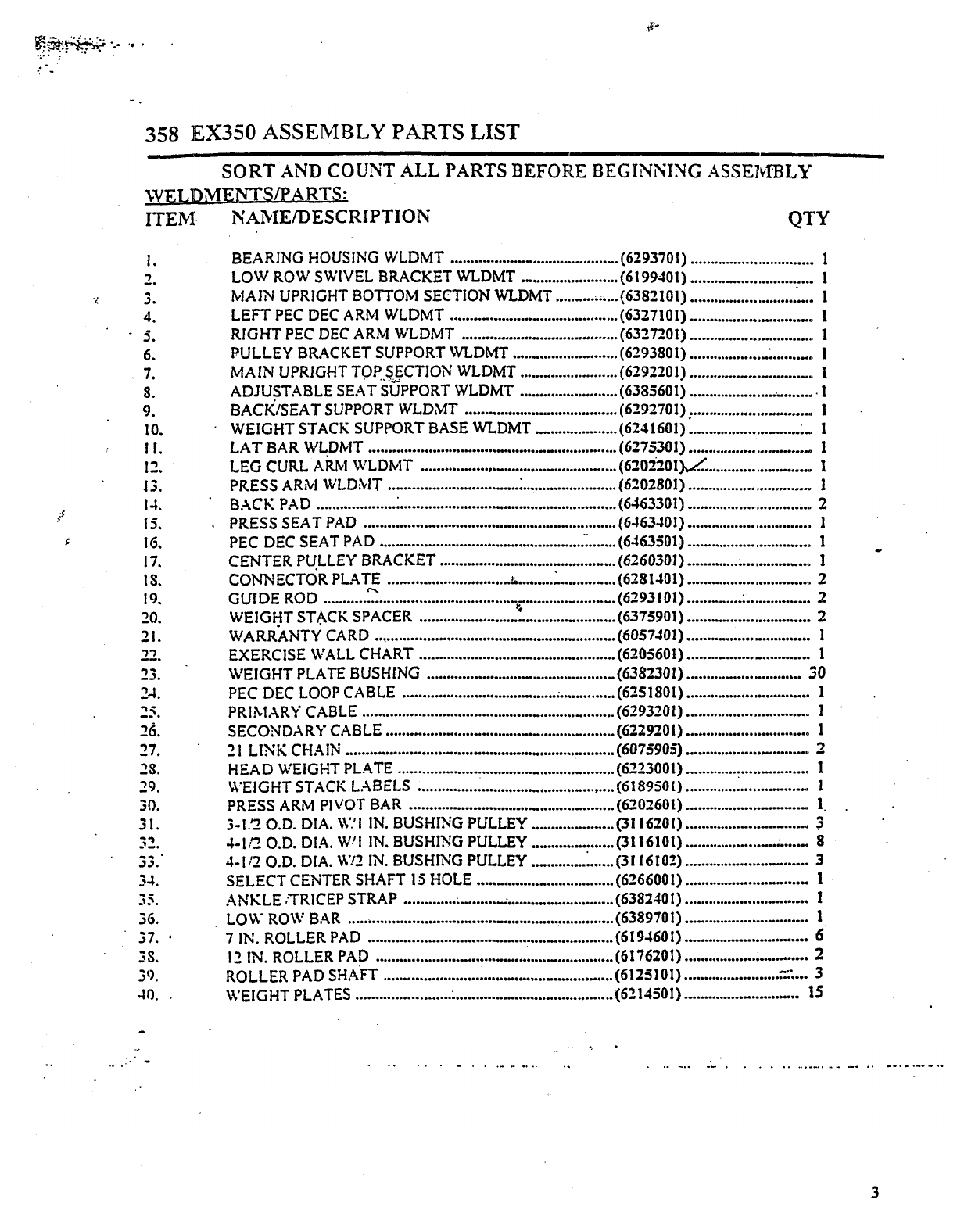 358 EX350 ASSEMBLY PARTS LIST