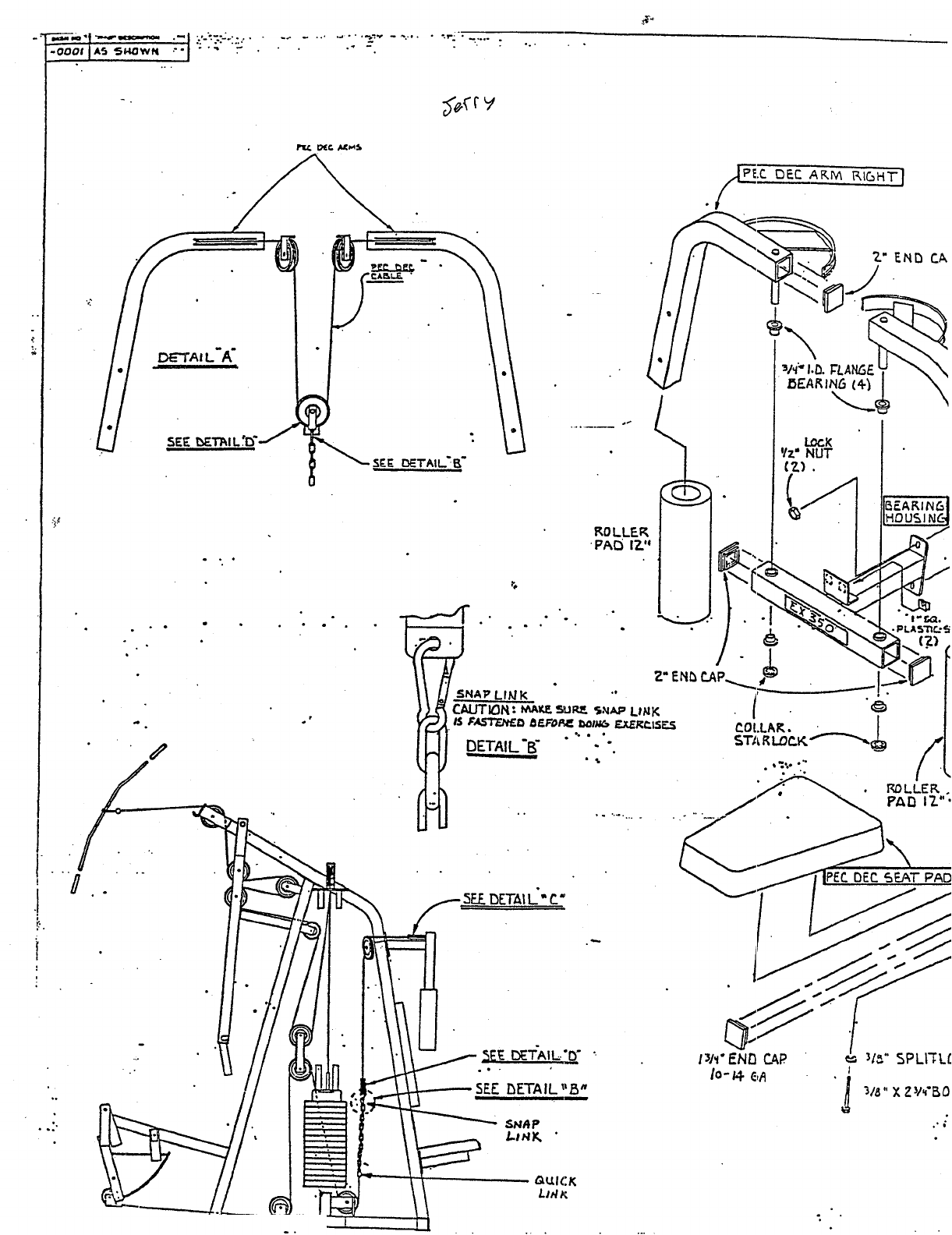 PAD SHAFT. and two {2} STAR LOCK COLLARS. (SEEDETAIL J)
