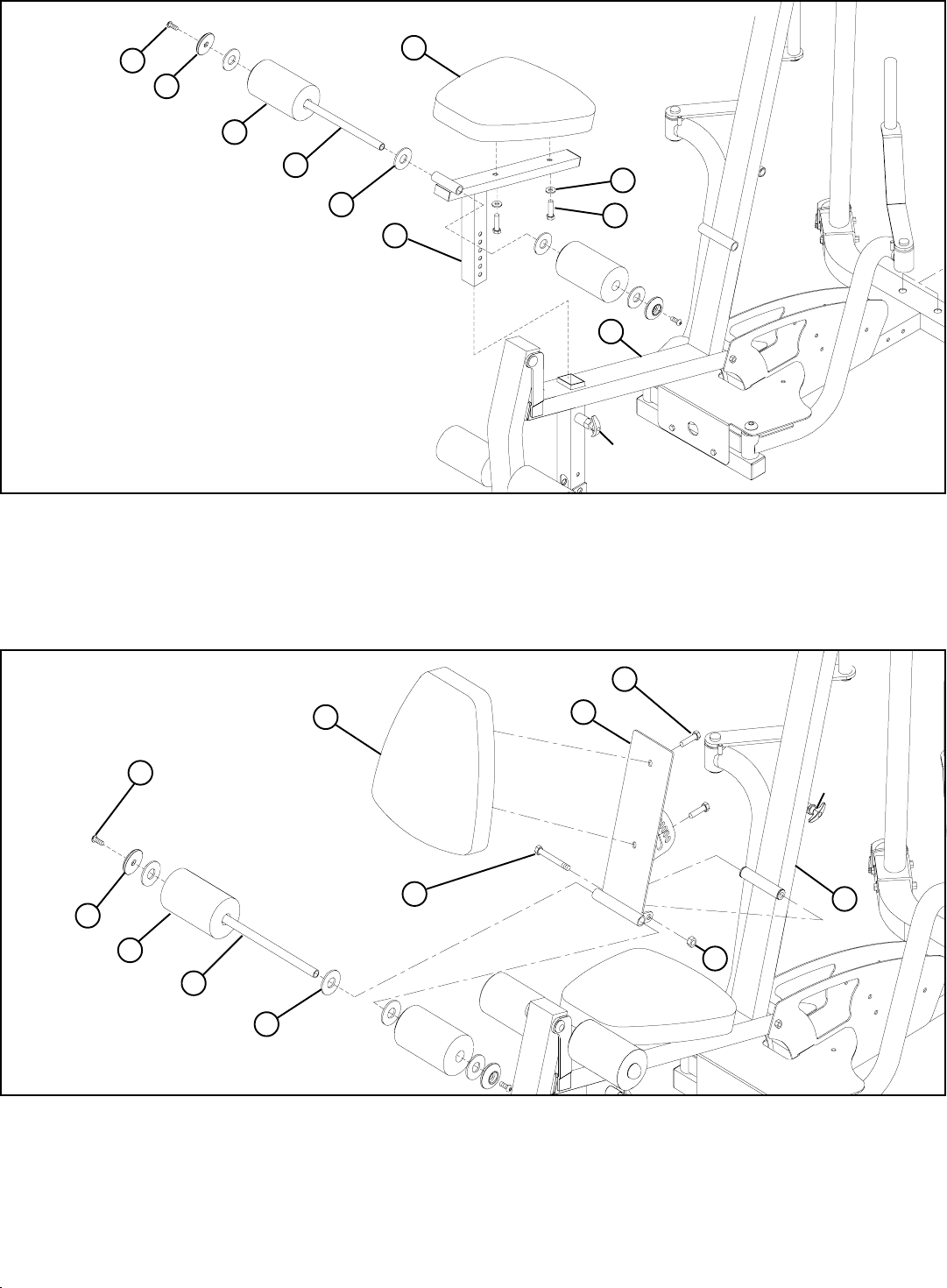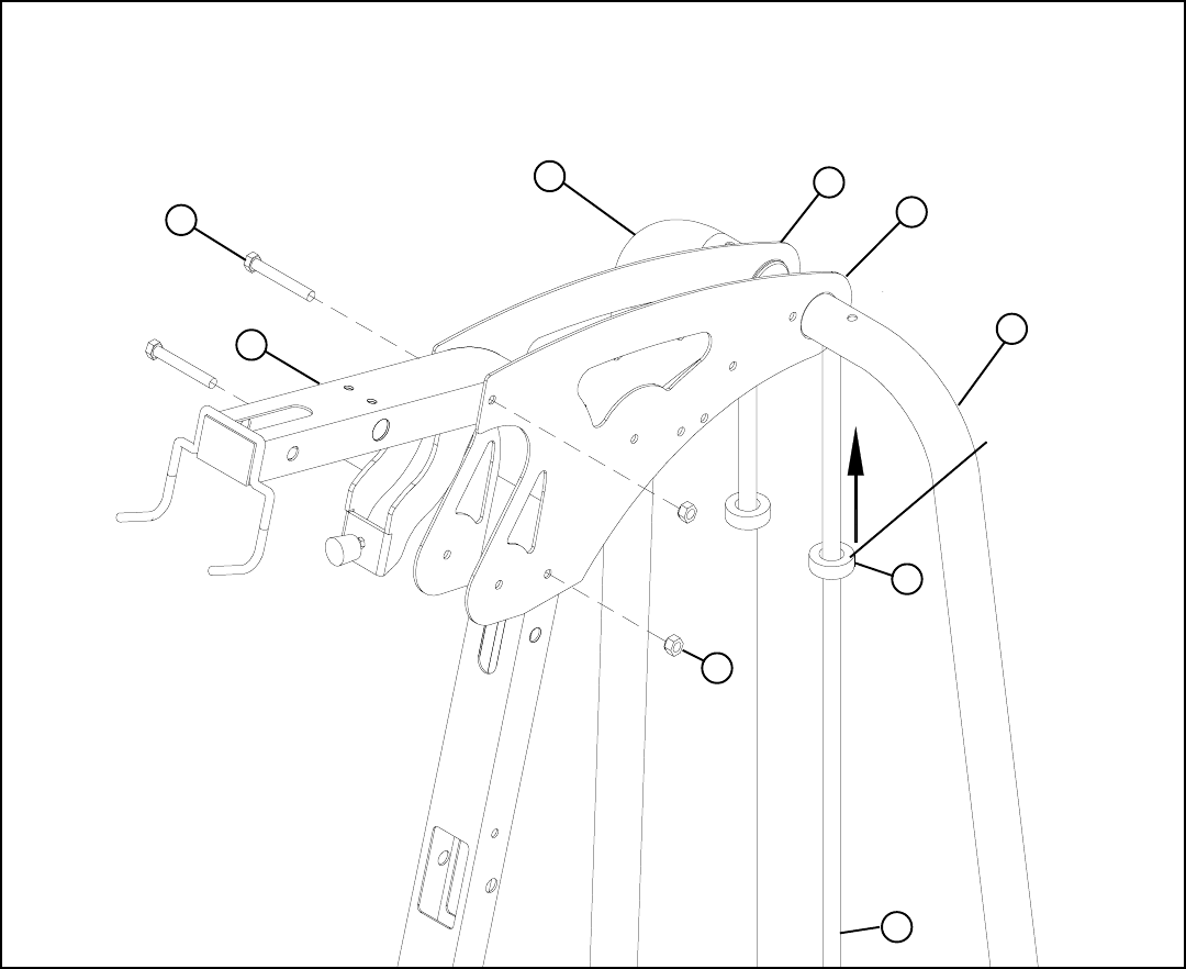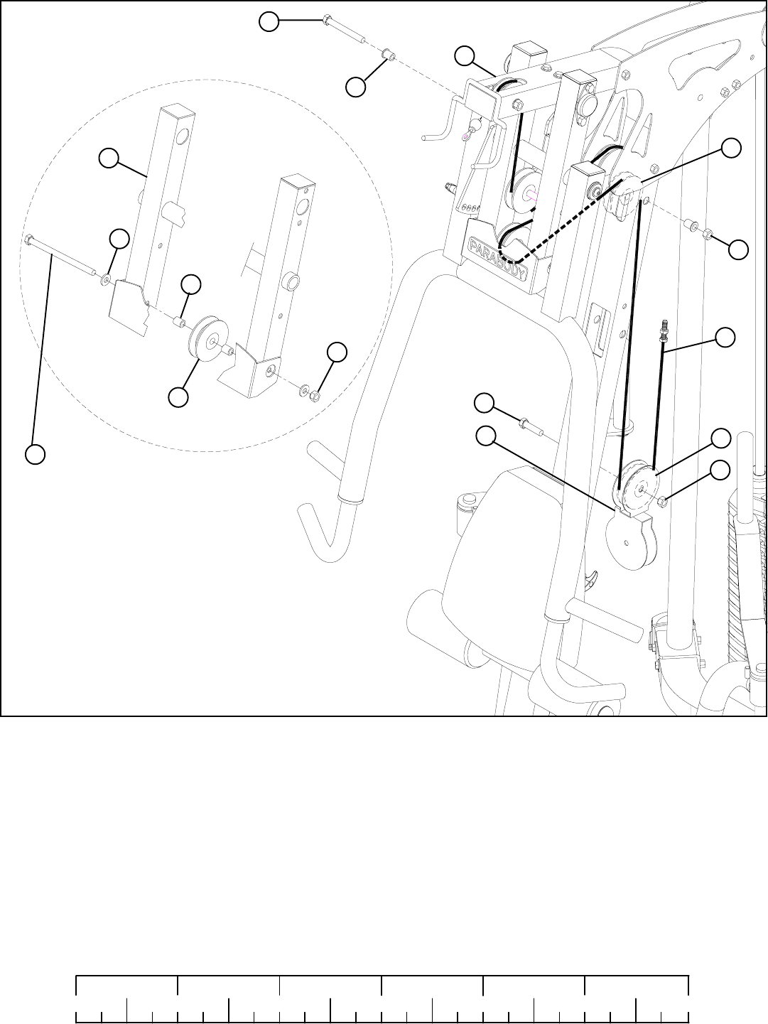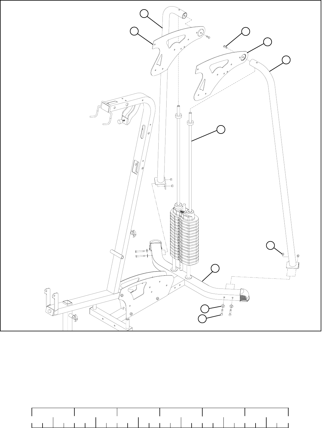 shafts, allen head bolts, weight selector pin, weight stack shaft, set screws, protector caps, adjustment chain, cotter pin, plunger, spring