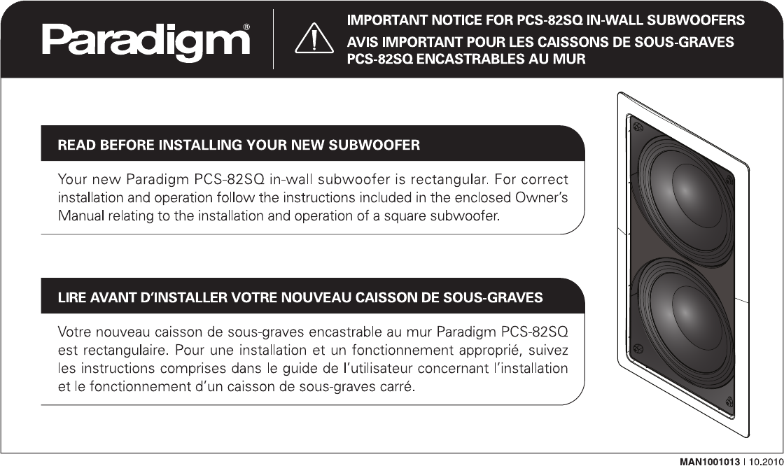 Paradigm Speaker In Wall Subwoofer Users Manual MAN1001013_PCS 82SQ_Subwoofers_OUTLINES