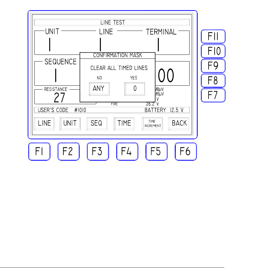 This is the mask as shown when the LINE TEST has been selected: the fields