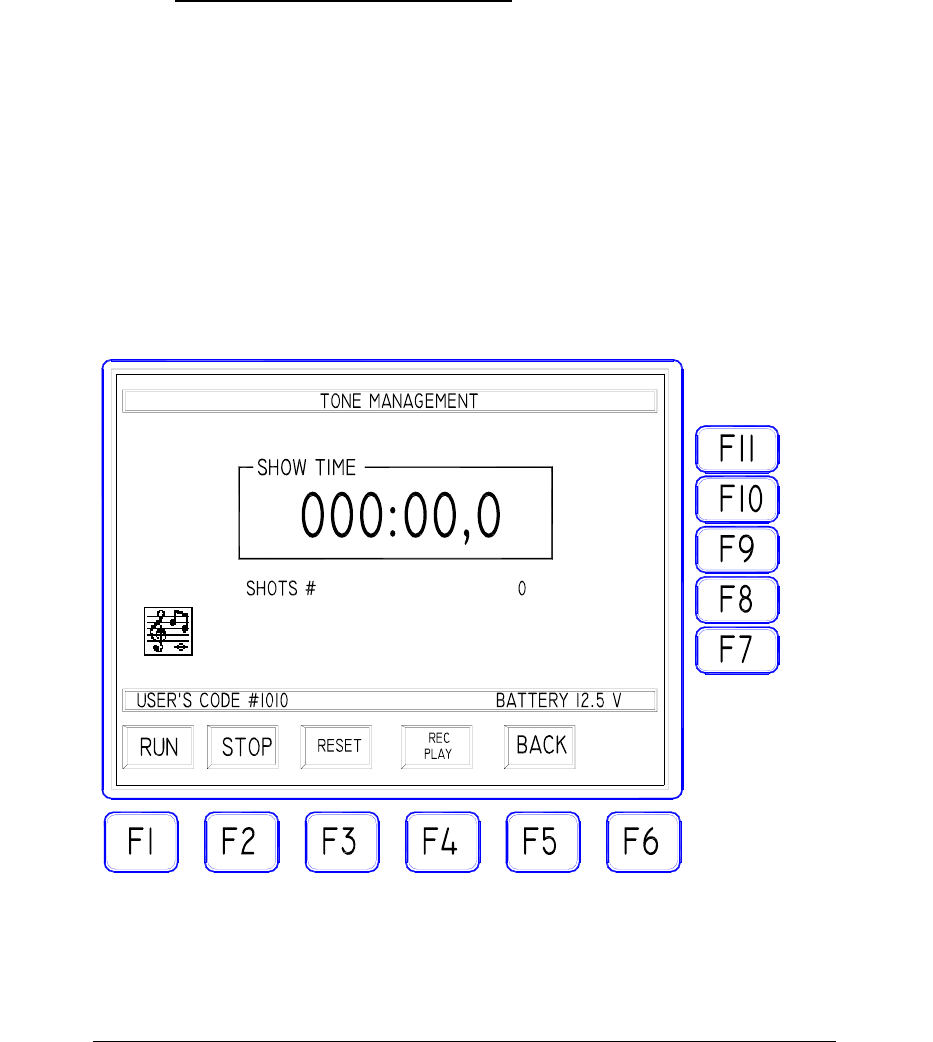 When the "FIRE" key is pressed the first time (start of the show), the time