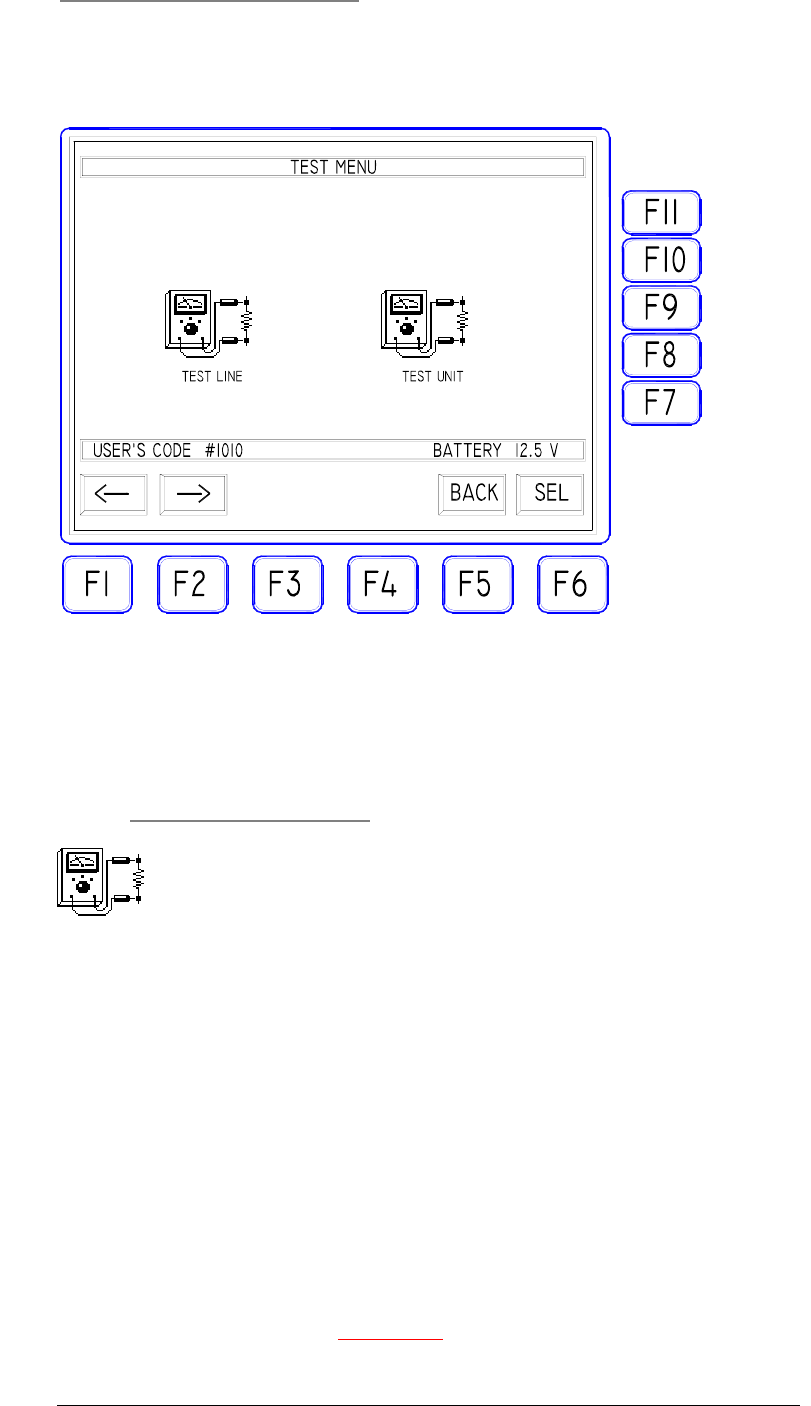"TEST LINE" and "TEST UNIT". With "SEL" F6 it will be open the mask