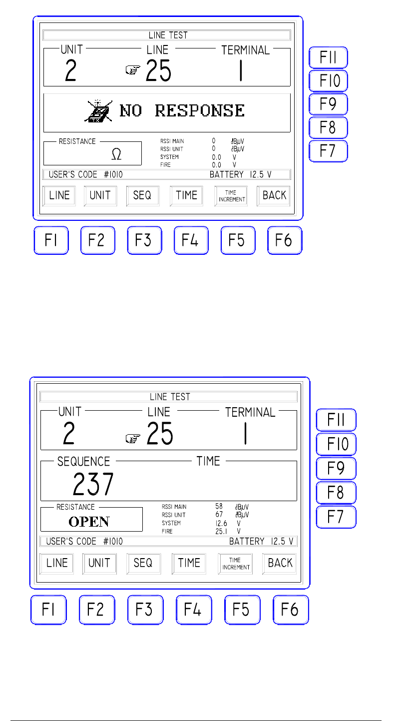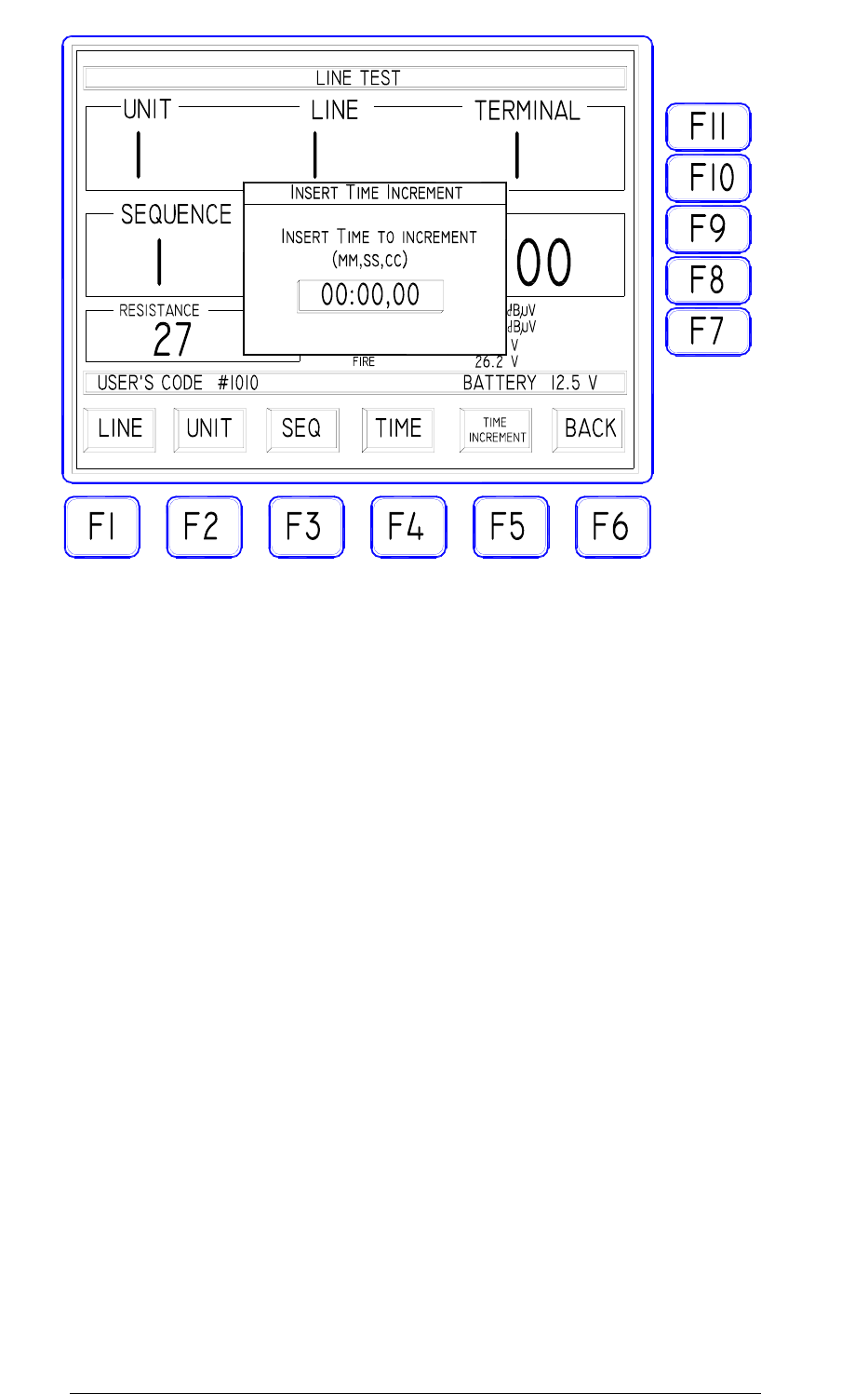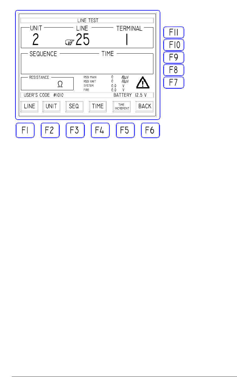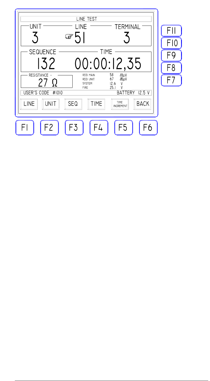 This is the mask as shown when the LINE TEST has been selected: the fields