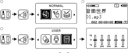 選擇 正常/JAZZ/ROCK/CLASSIC/VOCAL/USER六種數碼音效設置並按Joystick進行確定。
