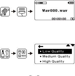 在主目錄底下選 "功能選項",選擇 "錄音品質" 選項,依個人喜好選擇Low(低)、
