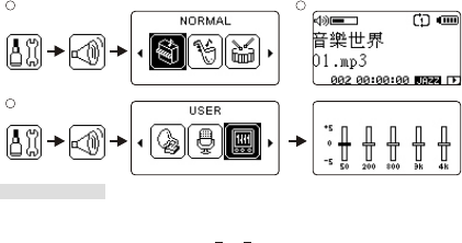或在播放音樂檔案時,重複按 "REC/EQ" 直至你想要的音效設置在顯示屏的右下方出