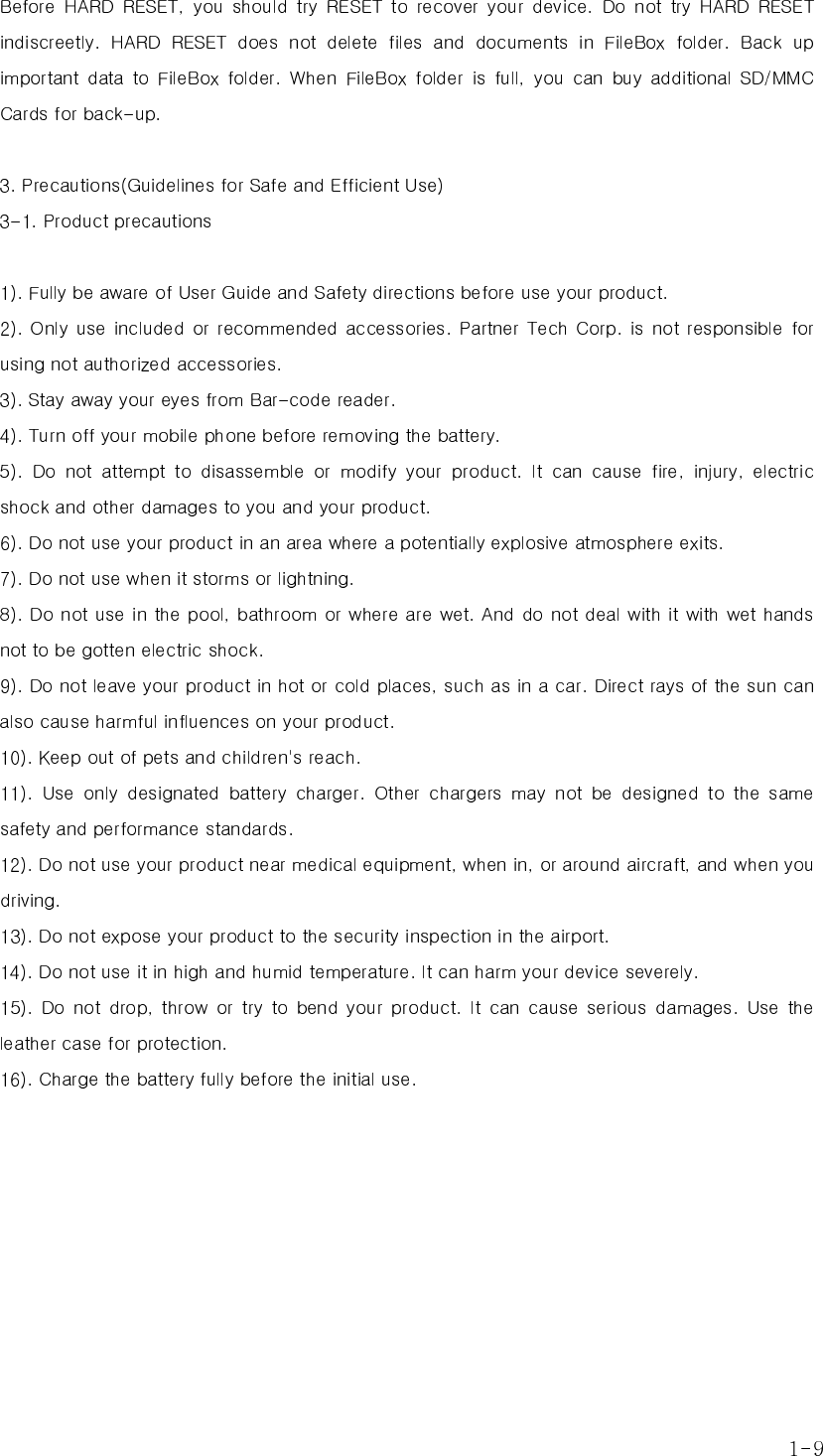 Partner Tech Corporation Hand Held Terminal M1 POS 060818