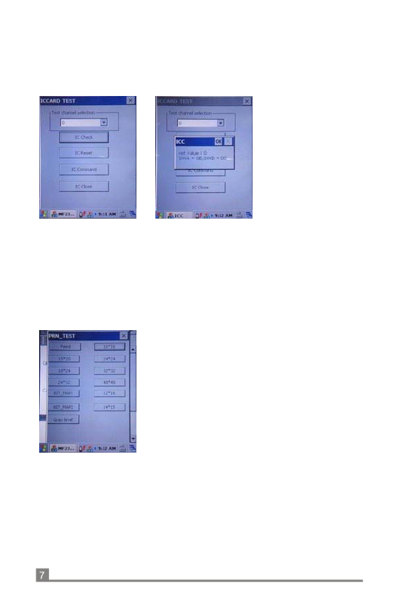 2. ICC test. Click“ICC”.  Insert IC card, if you want to test IC command