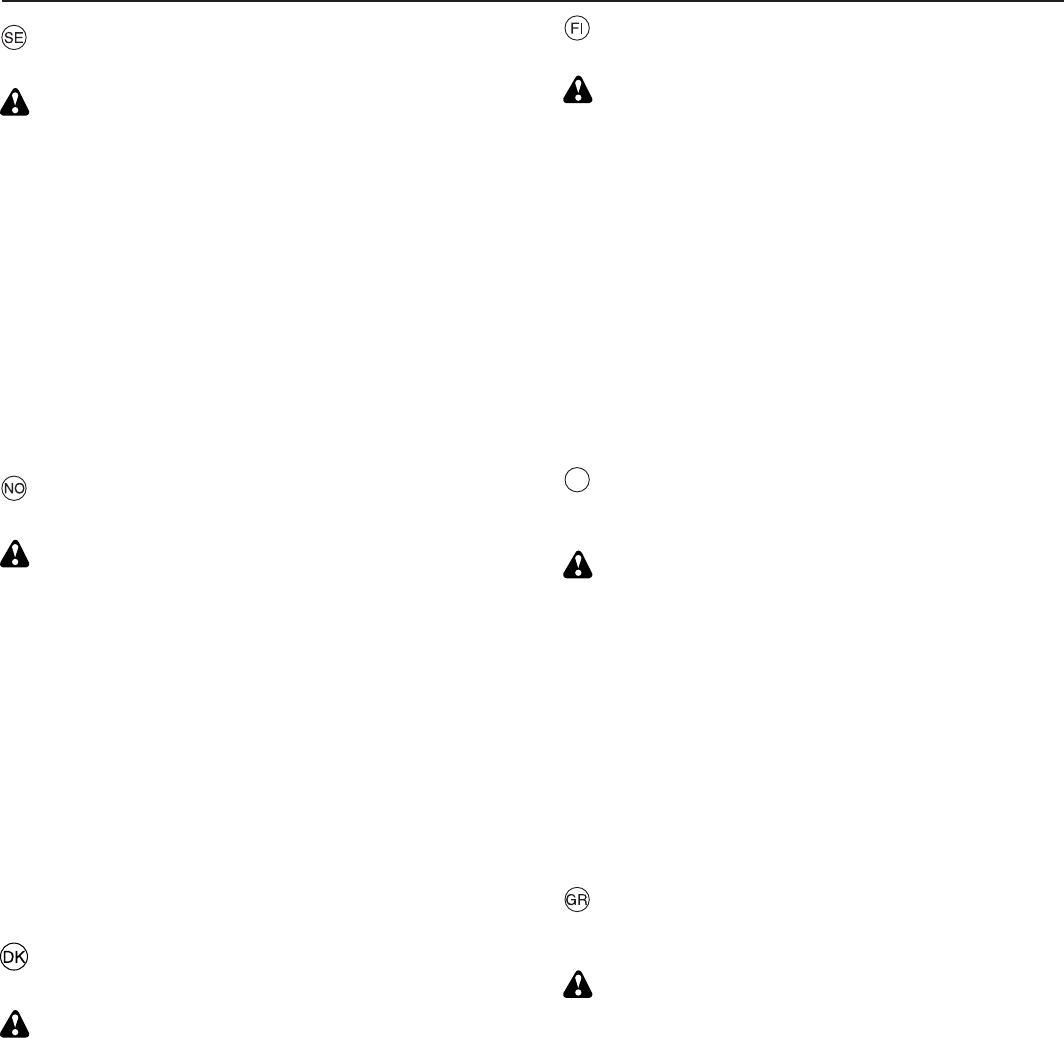 Säkerhetsföreskrifter. Turvallisuussäännöt.