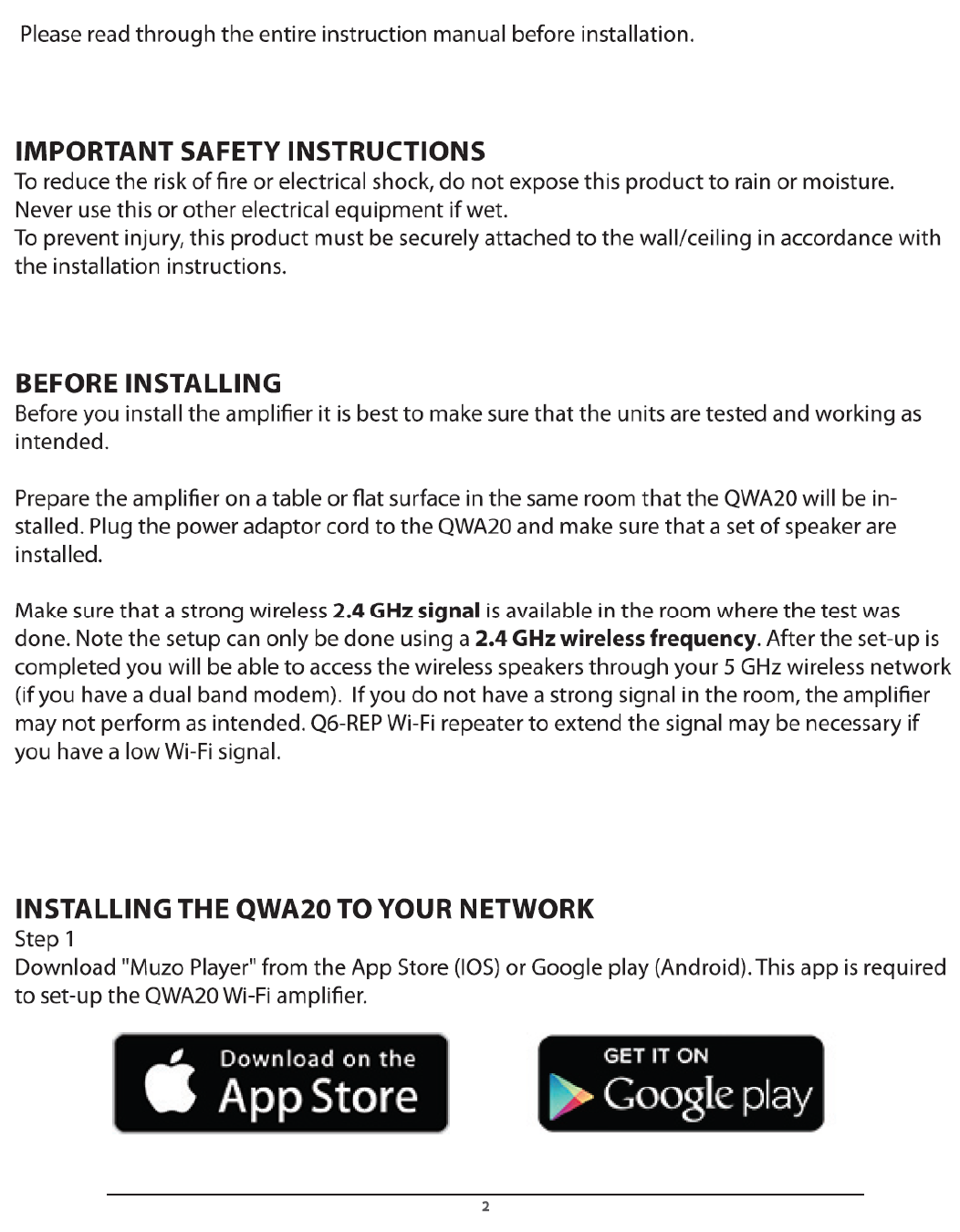 Parts Express WF40A WF40A Multi-Room Wi-Fi 2x20W Amplifier with IR Remote User Manual x