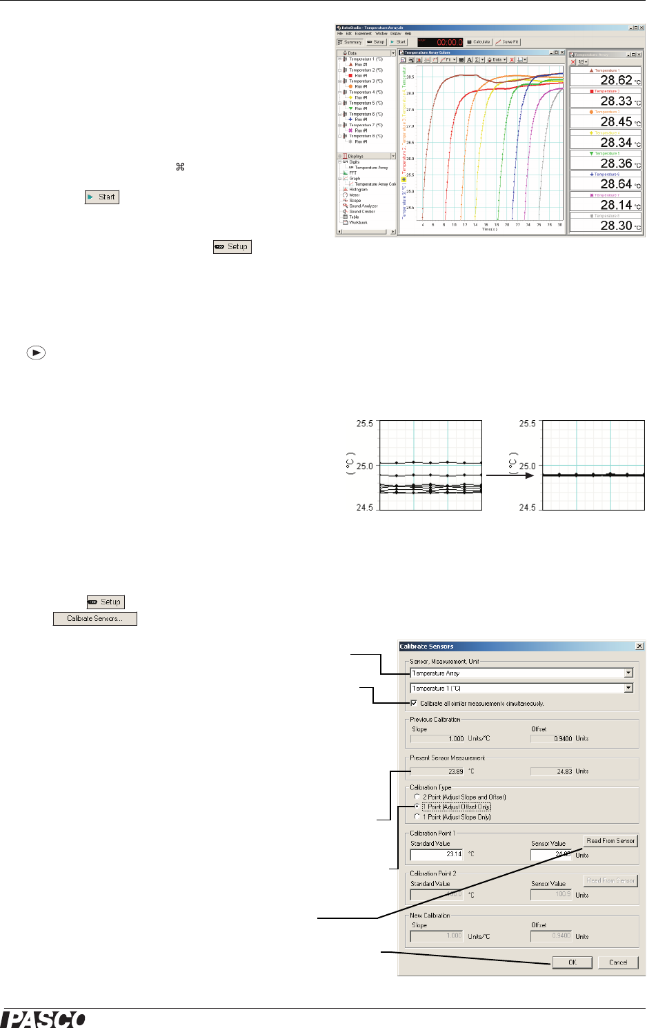 computer), connect the Temperature Array to the Xplorer or Xplorer GLX and press