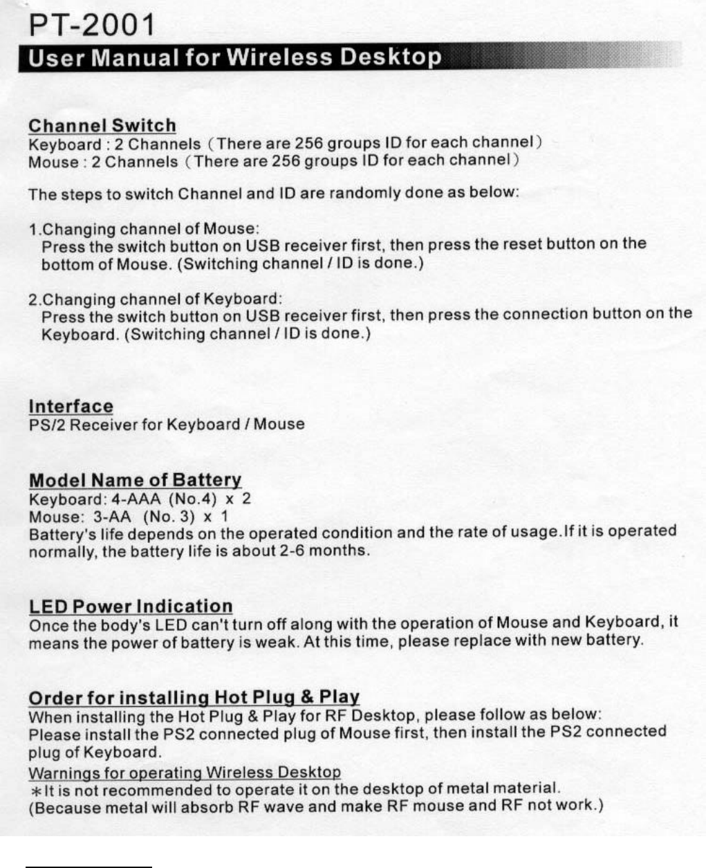 Paten Wireless Technology PD-0020201 Wireless Mouse User Manual Manual