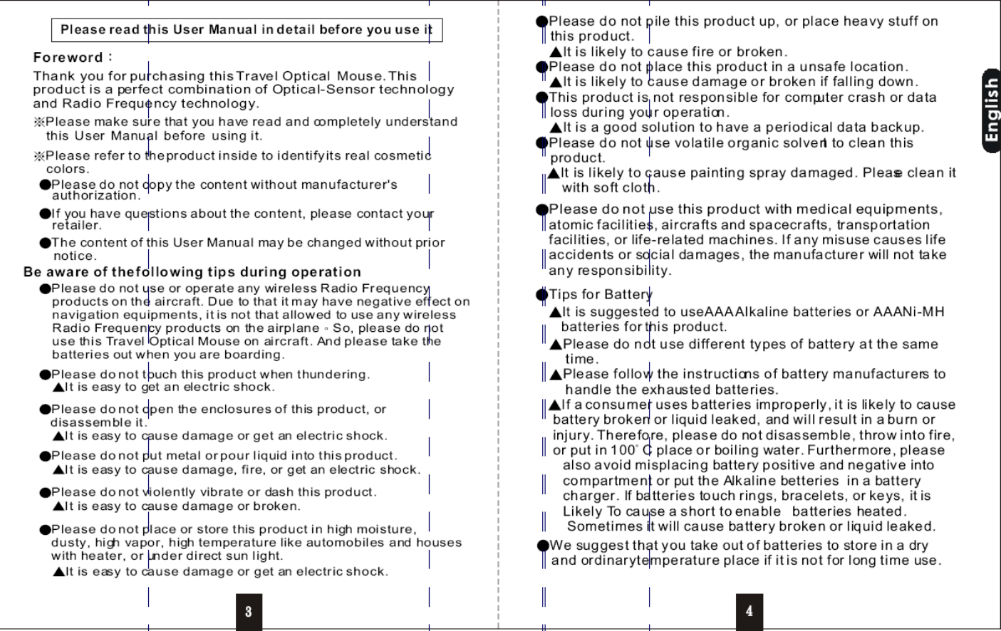 Paten Wireless Technology PT-04-MF PATEN WIRELESS OPTICAL TRAVEL MOUSE User Manual