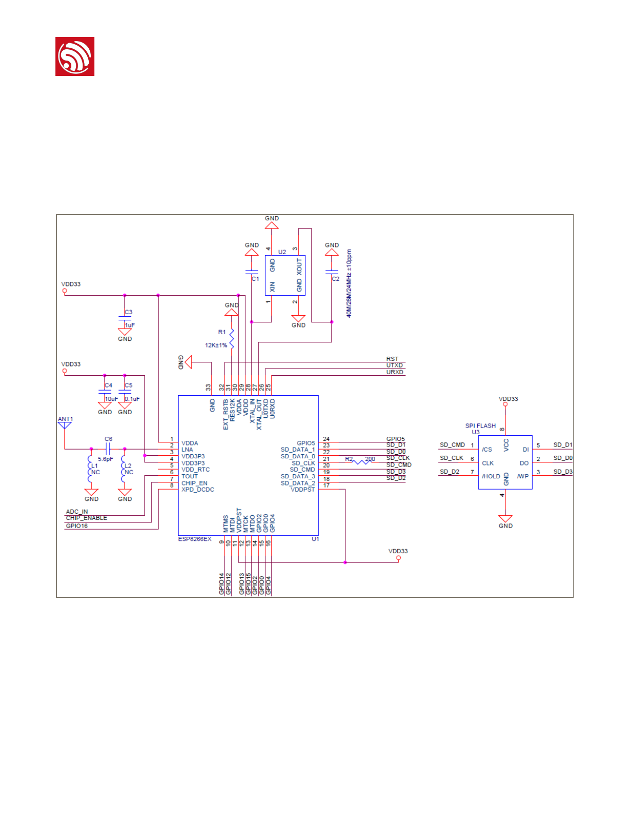 6.4. Schematics of ESP8266EX as SDIO/SPI Slave Device