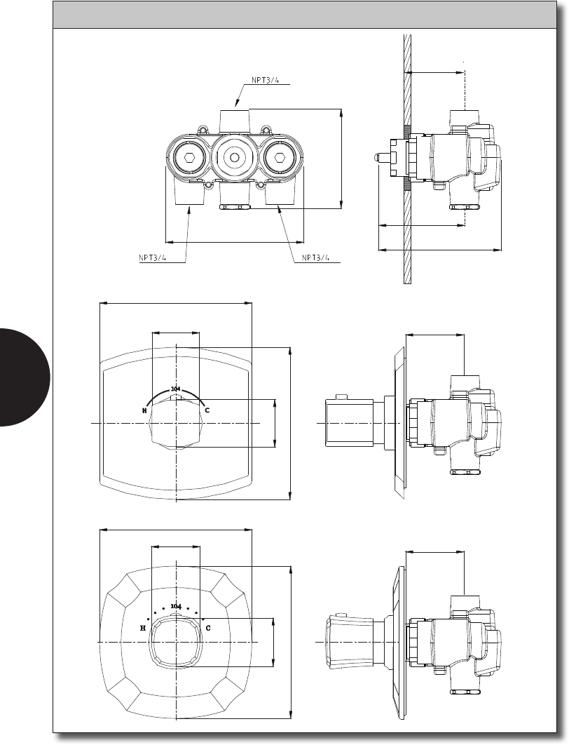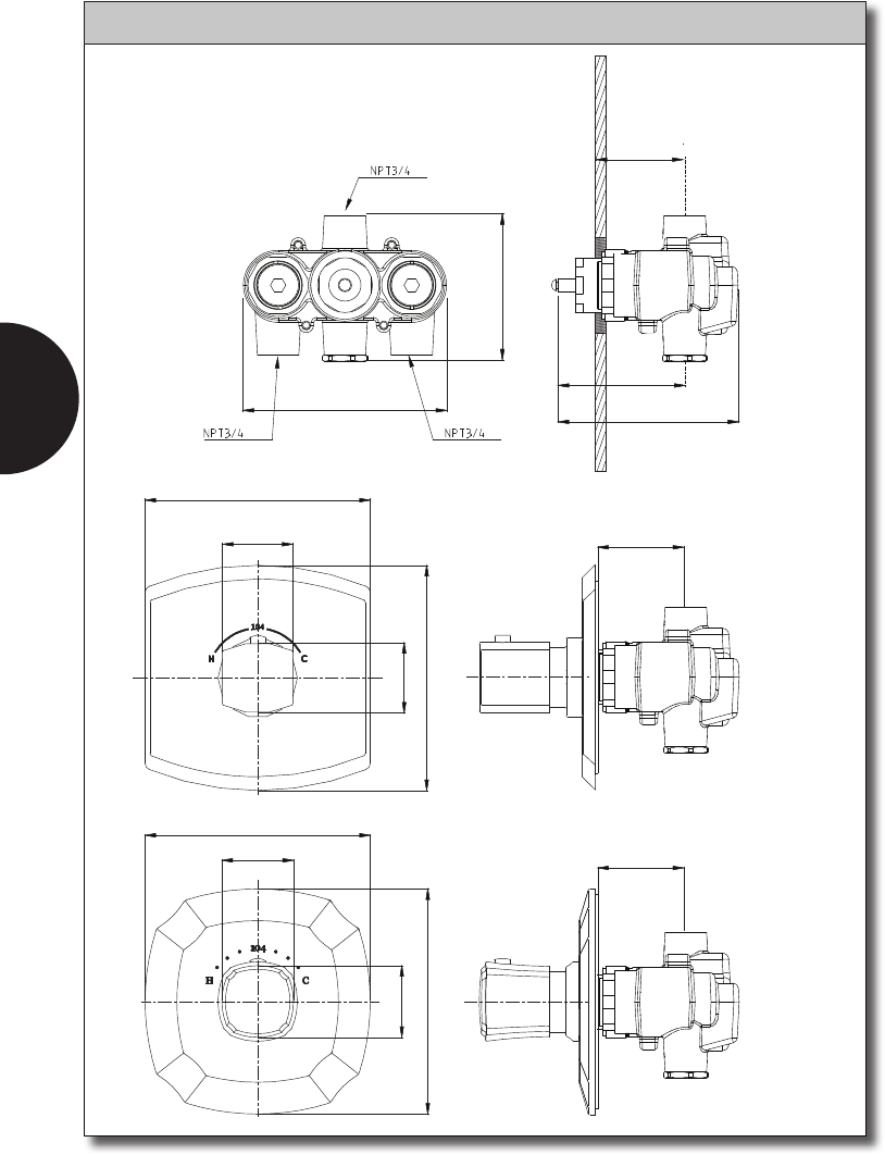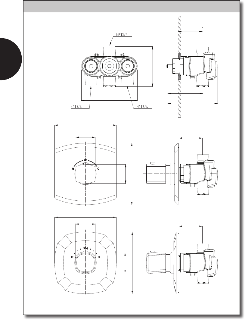 3/4” therMostatIc MIxIng ValVe (rough ValVe only)