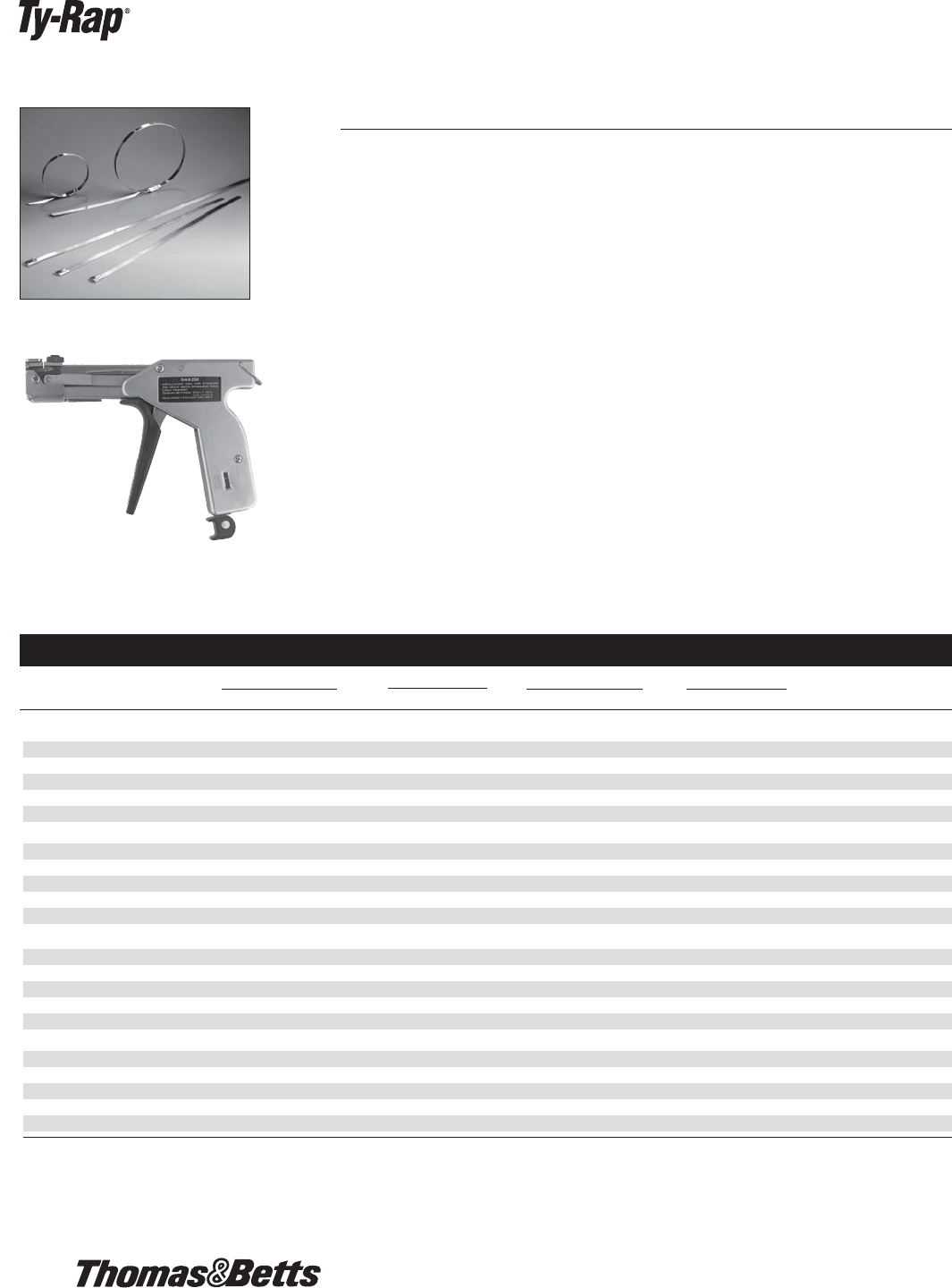 cable tying. It installs self-locking Ty-Rap®cable ties having body