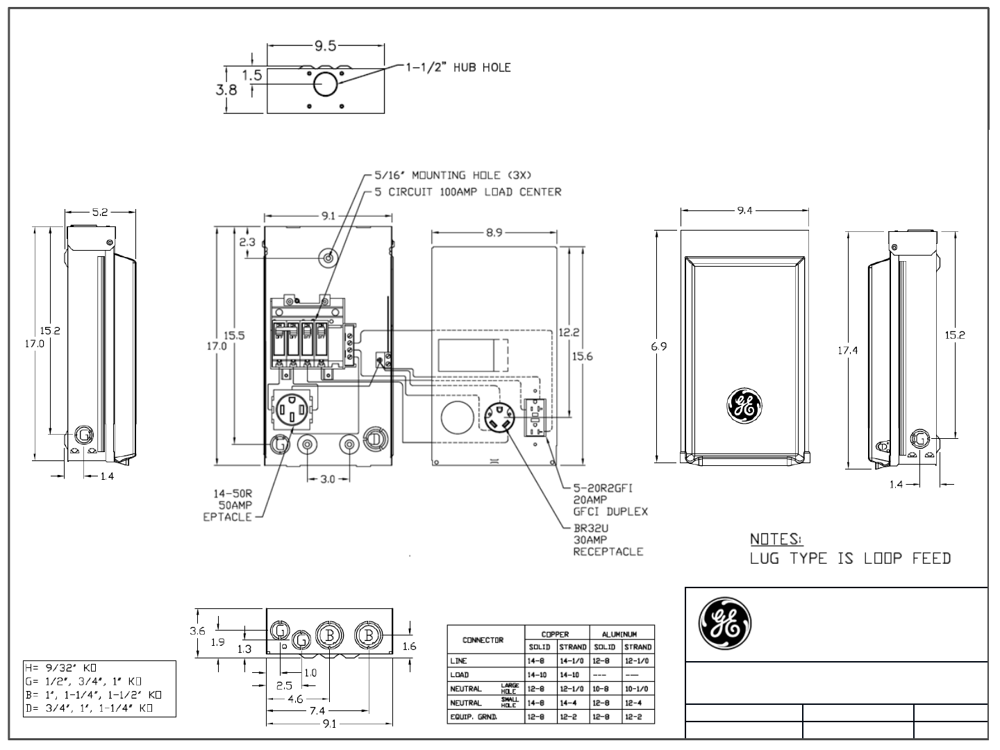 GE RV EQUIP–100A–MLO–UNMETERED–50A,30A&20A
