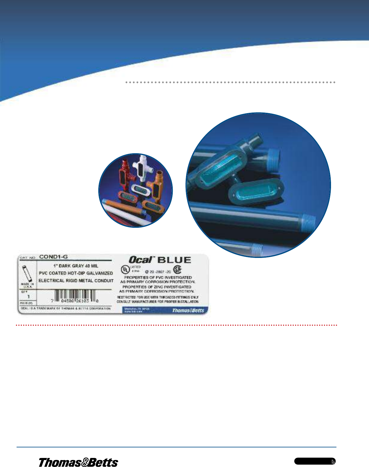supports and patching compounds. With OcalTM PVC-coated conduit and fittings,