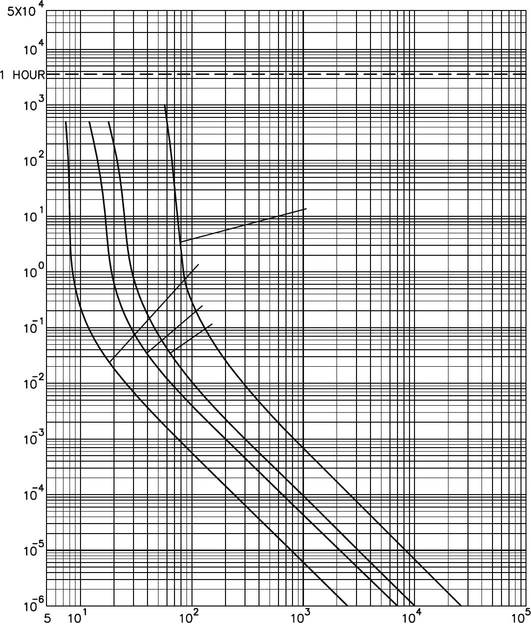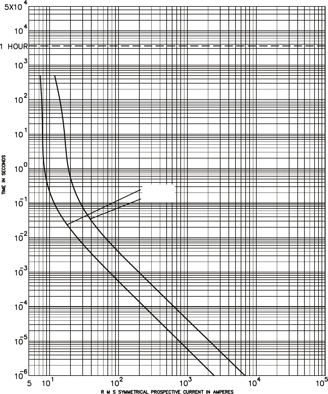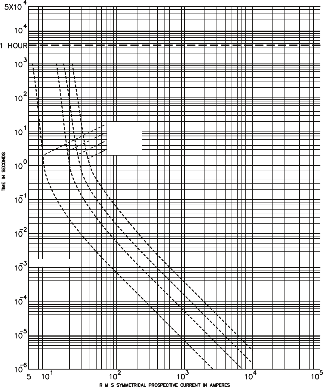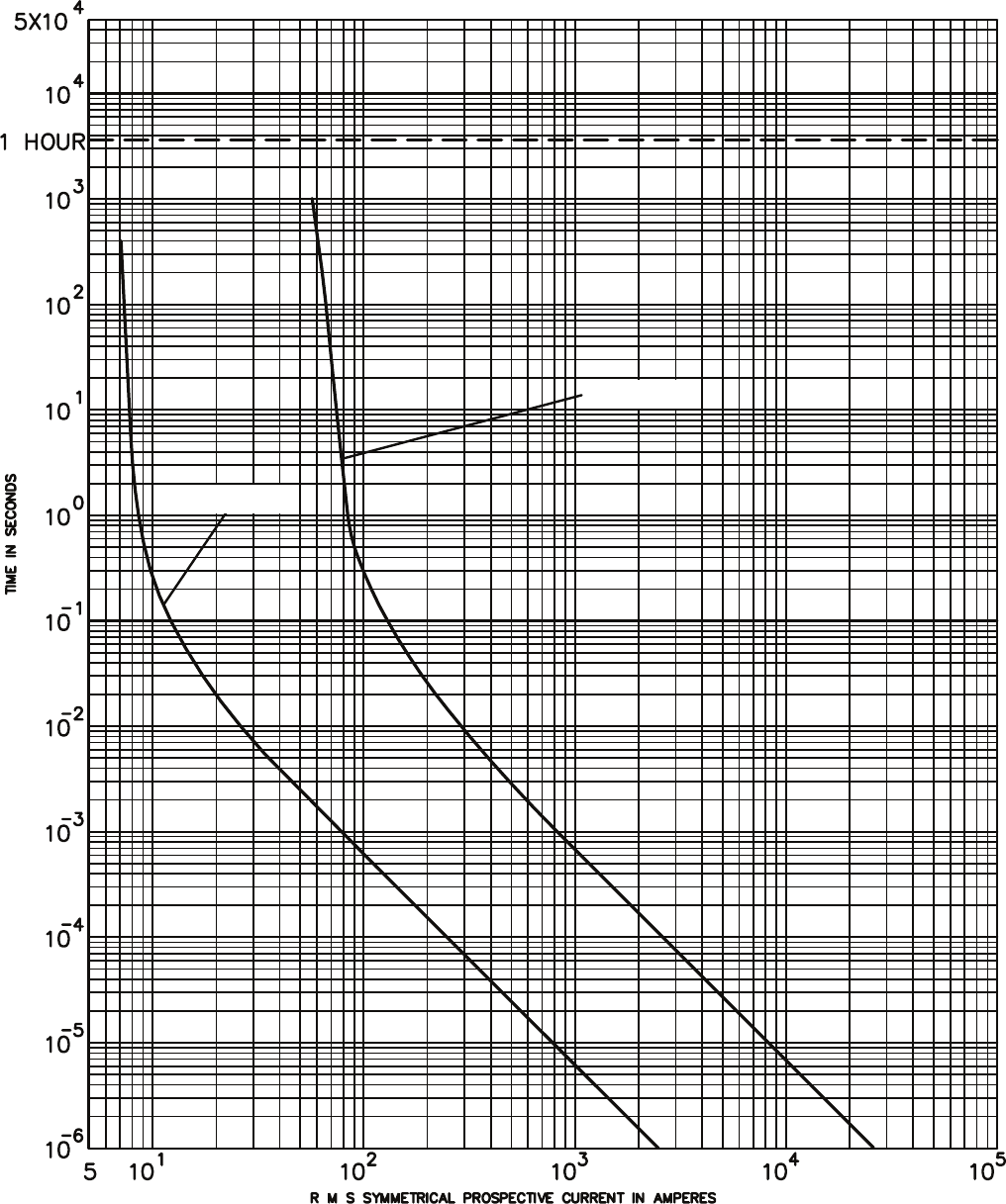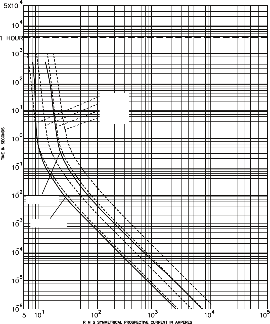 38kV time-current curves — minimum melting for 38CAV_ and 38CAVH