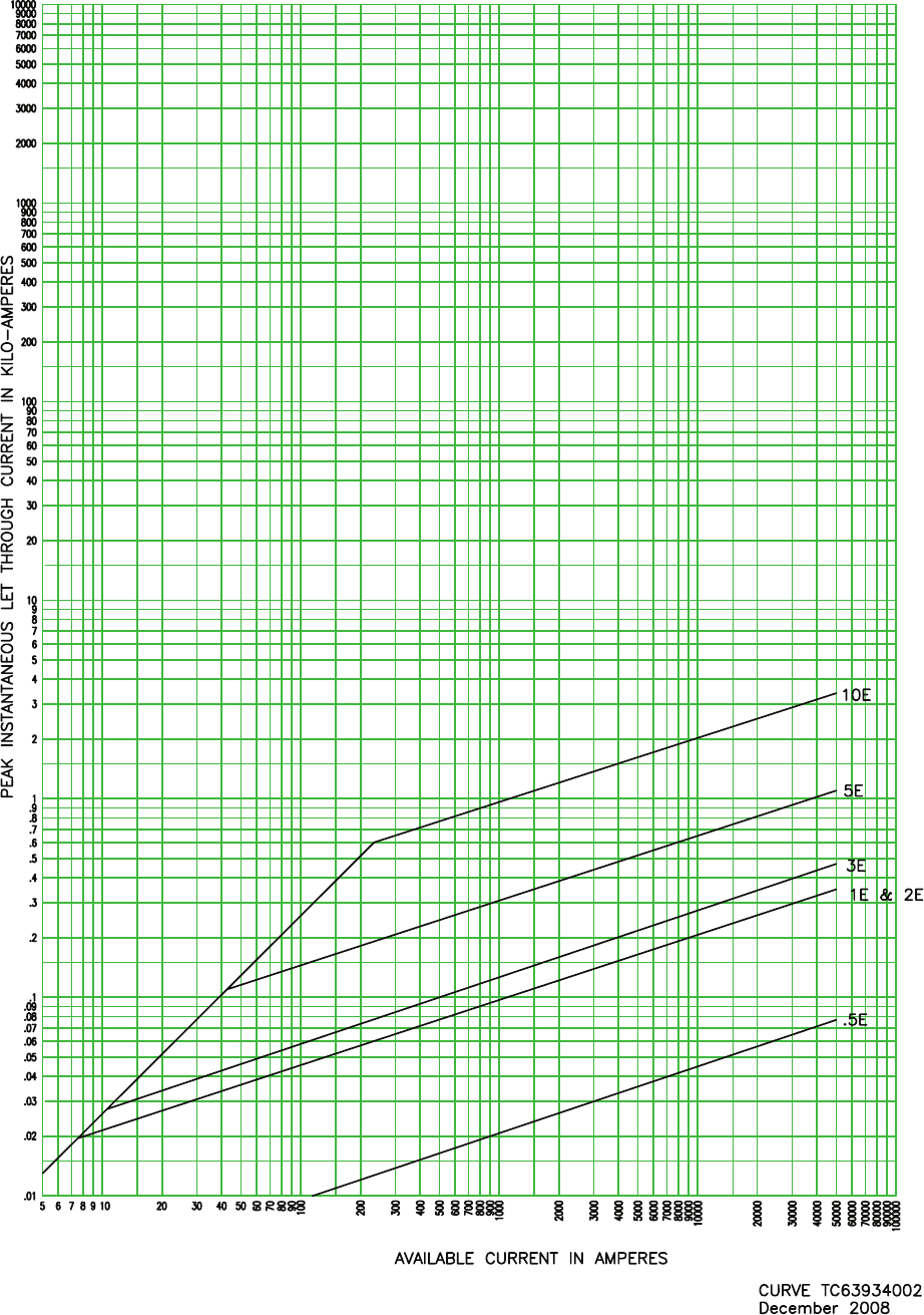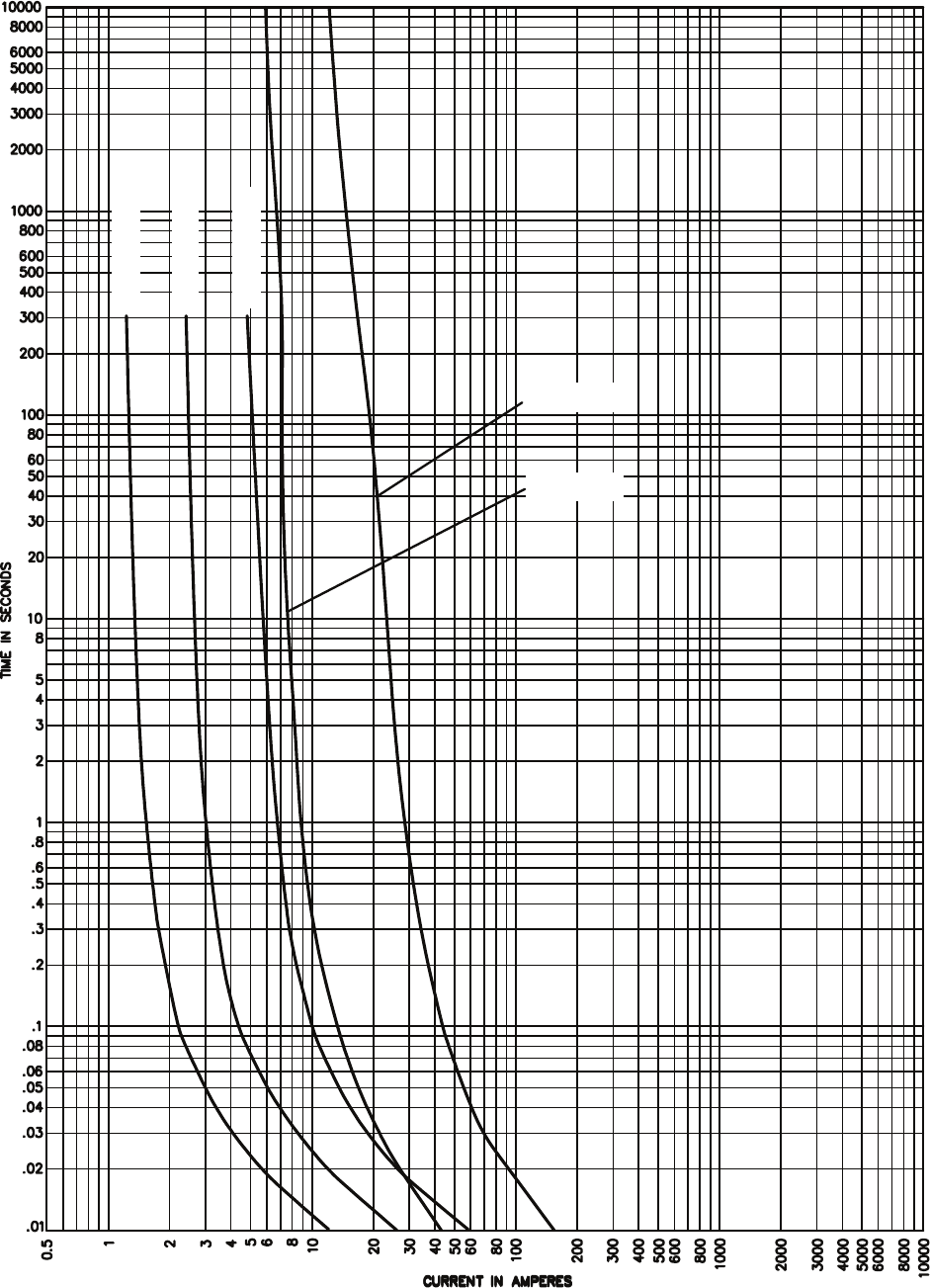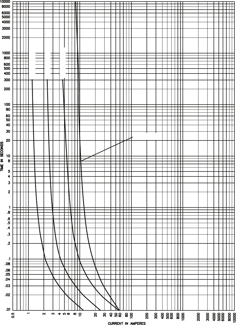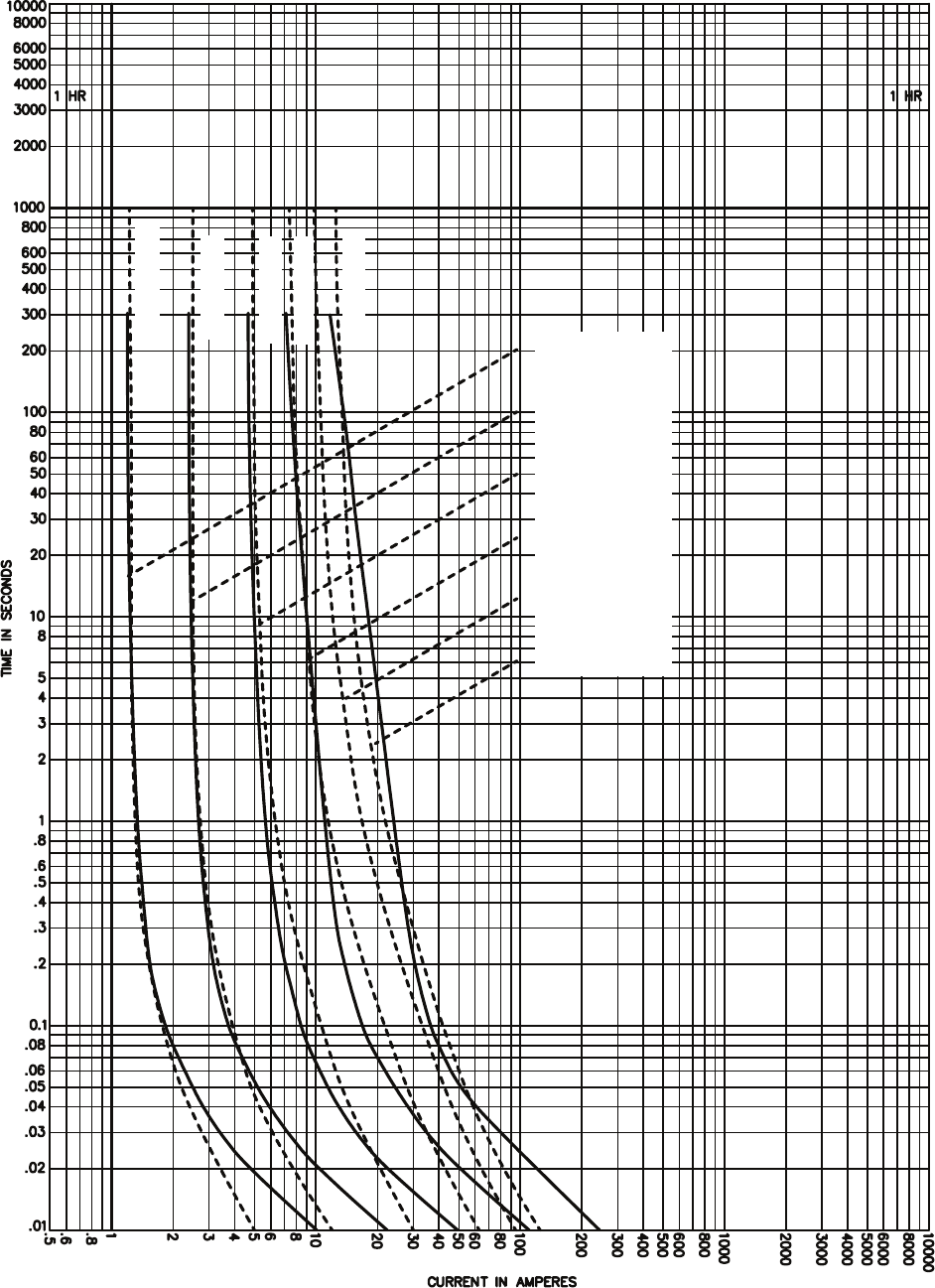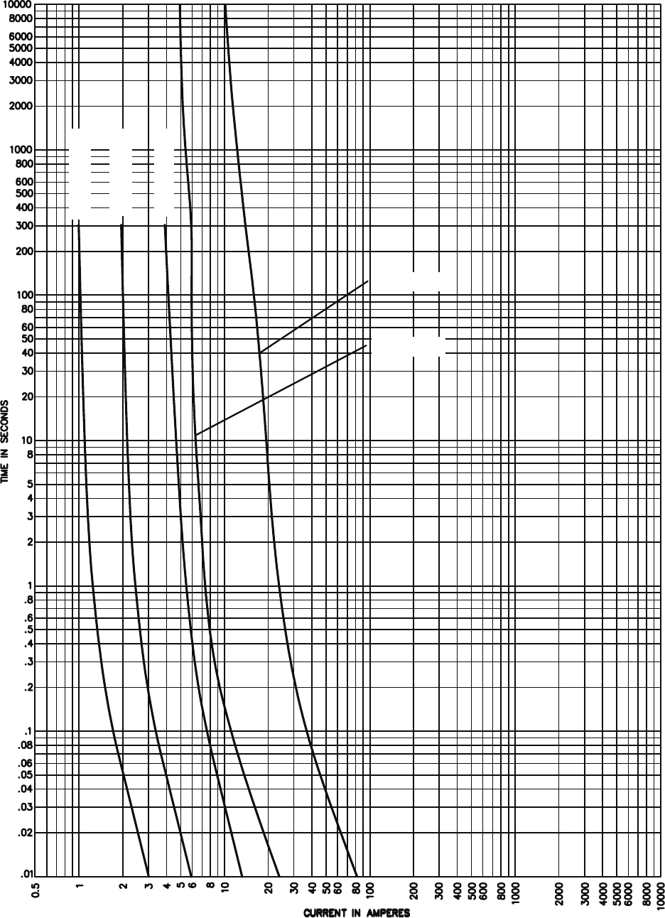 38kV time-current curves — minimum melting for 38CAV_ and 38CAVH