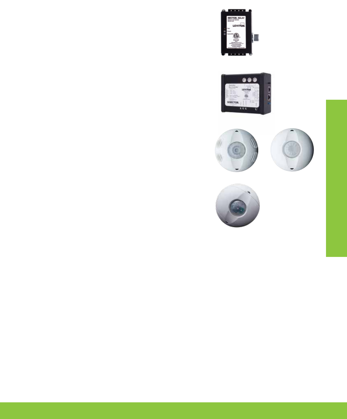 • Occupancy and Vacancy Sensing Control - A complete line of PIR, ultrasonic, multi-technology and daylight harvesting sensors