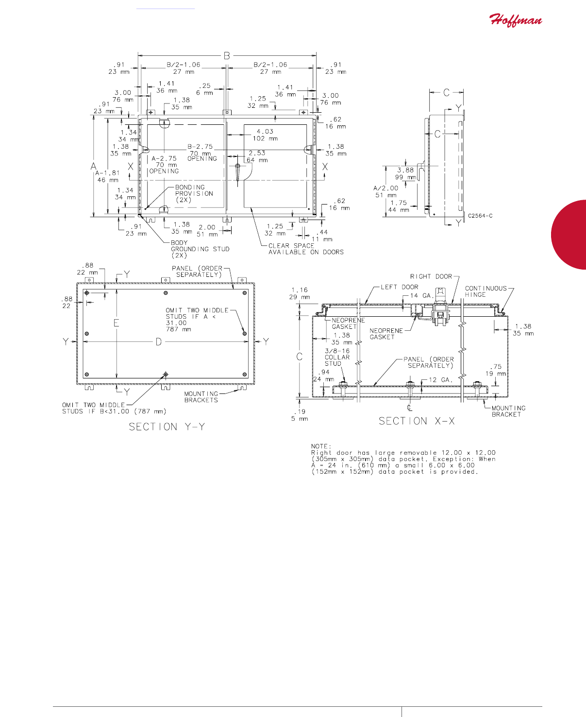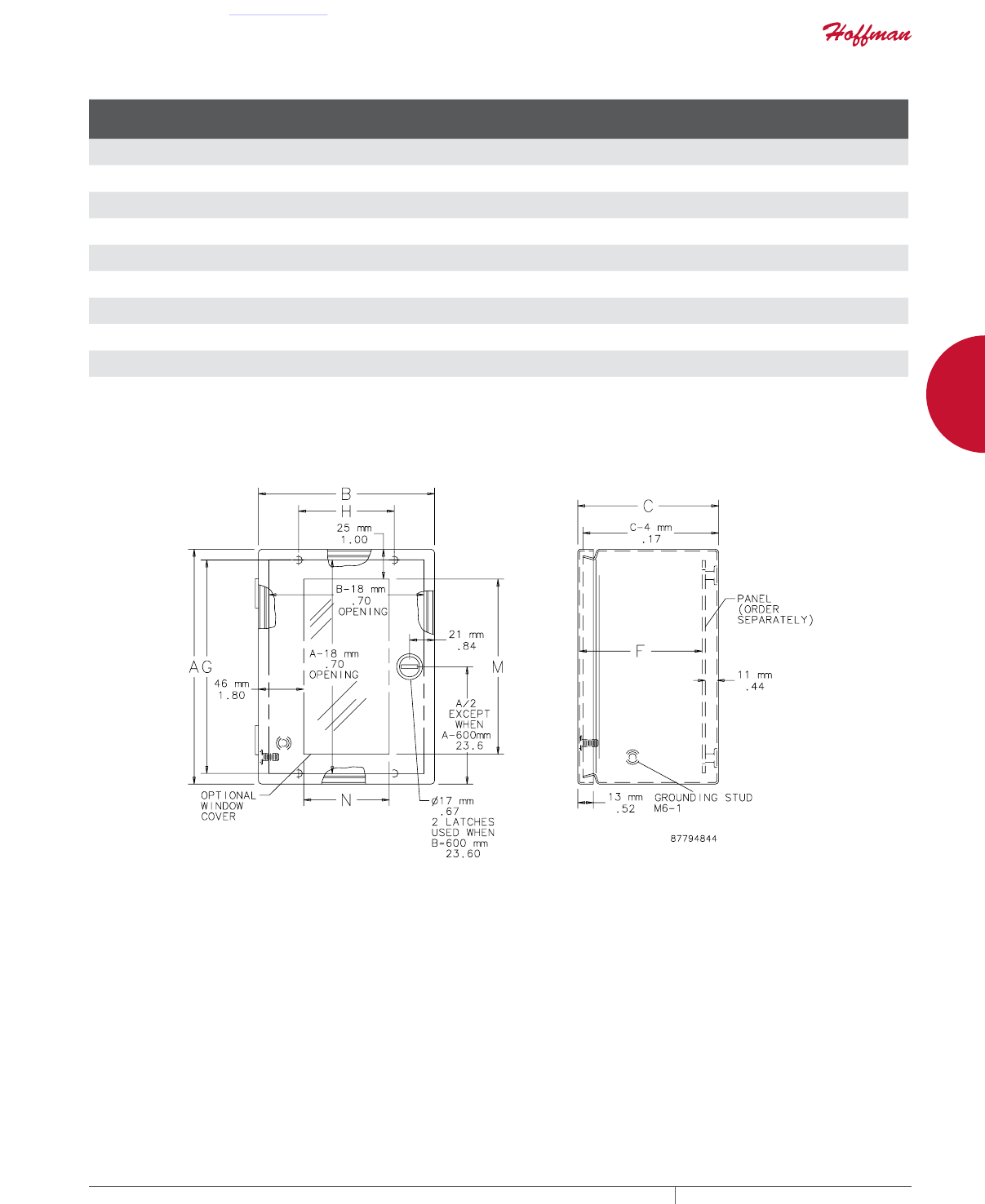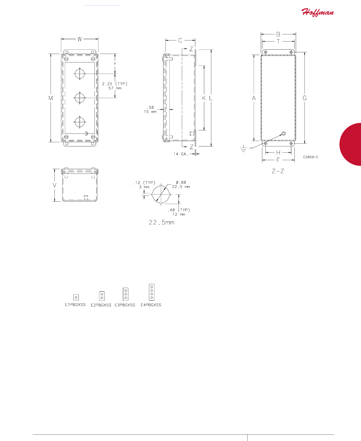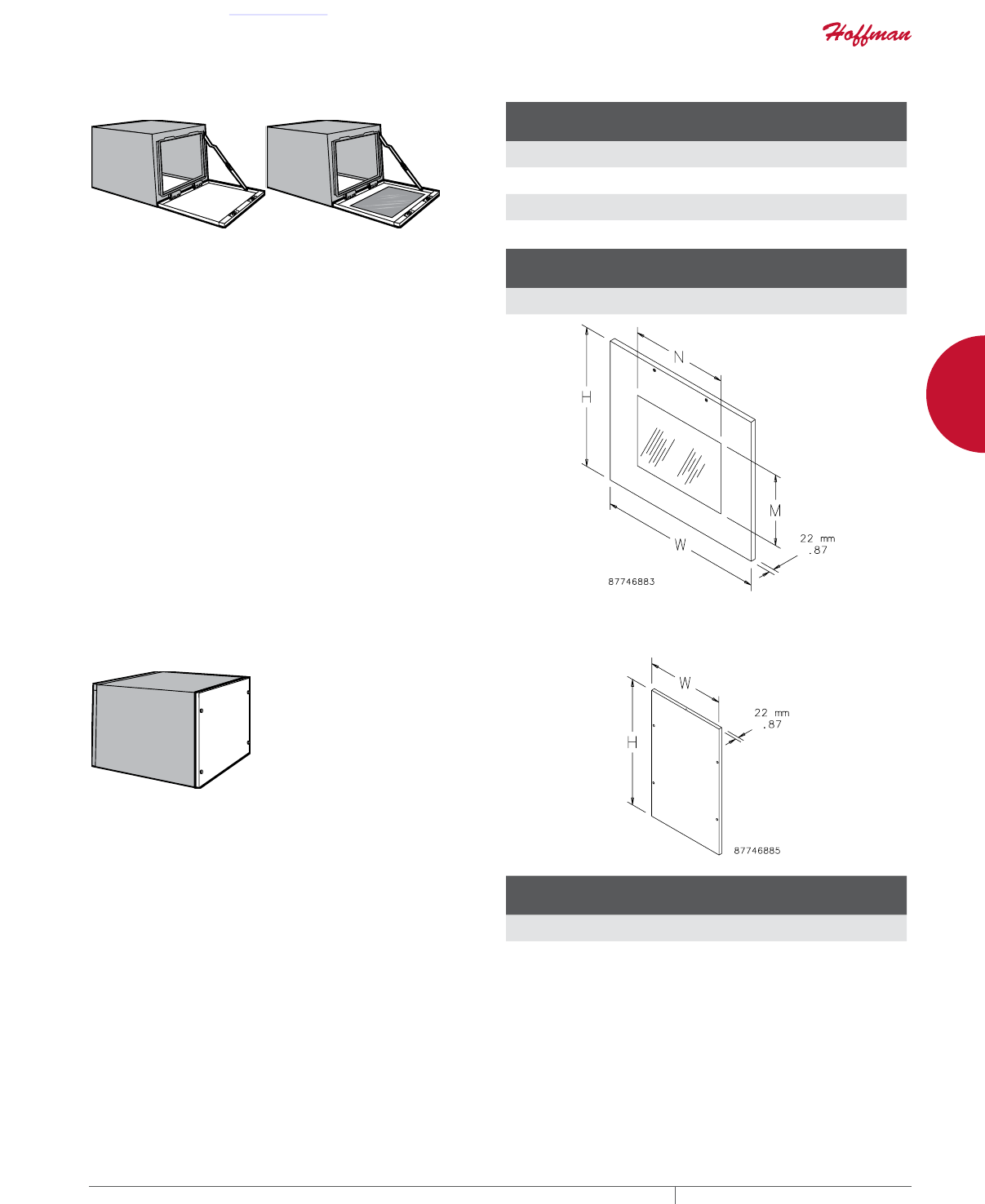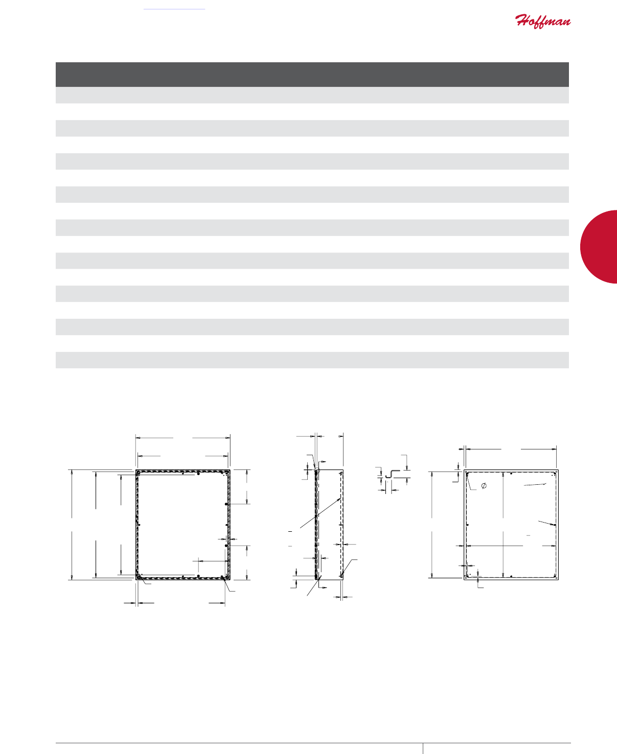 cutouts are available; consult Hoffman for ordering information.