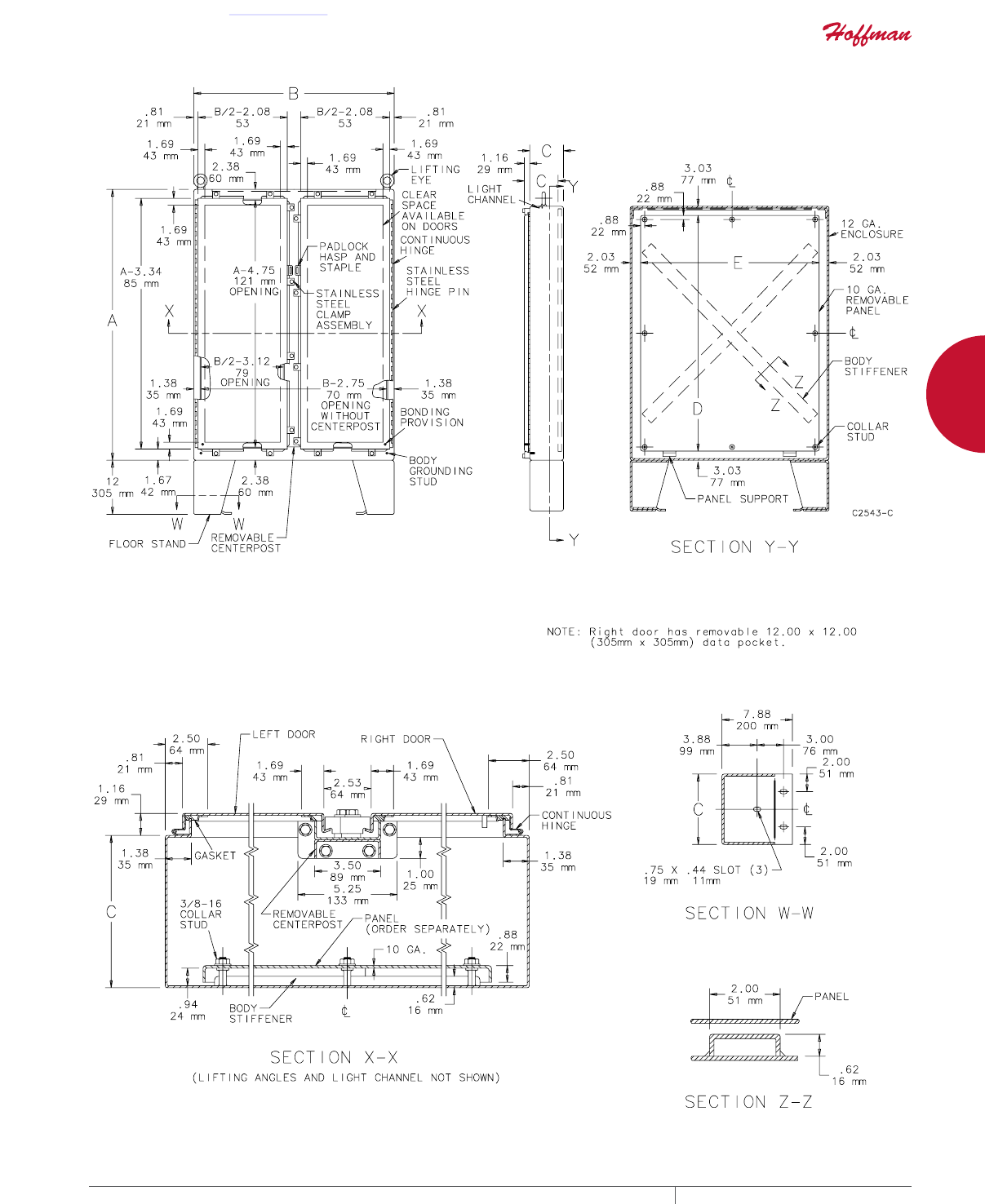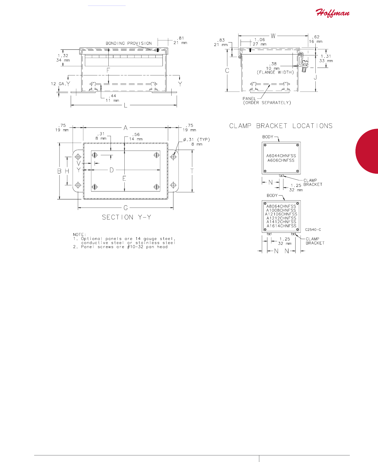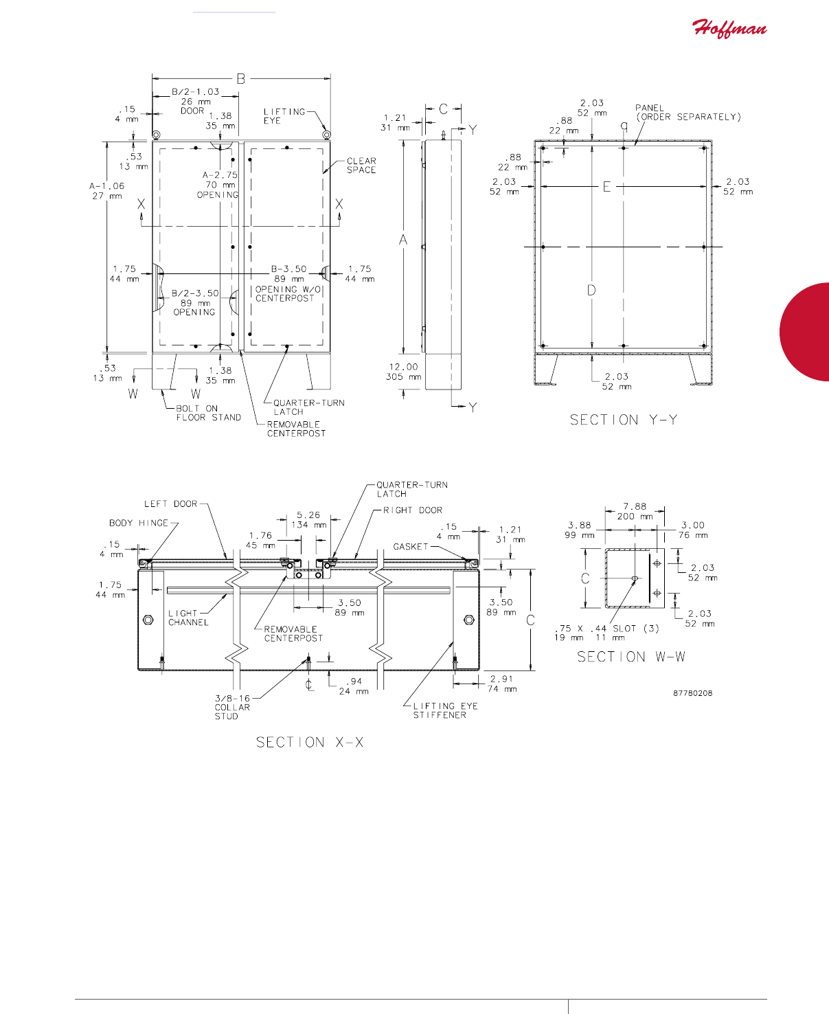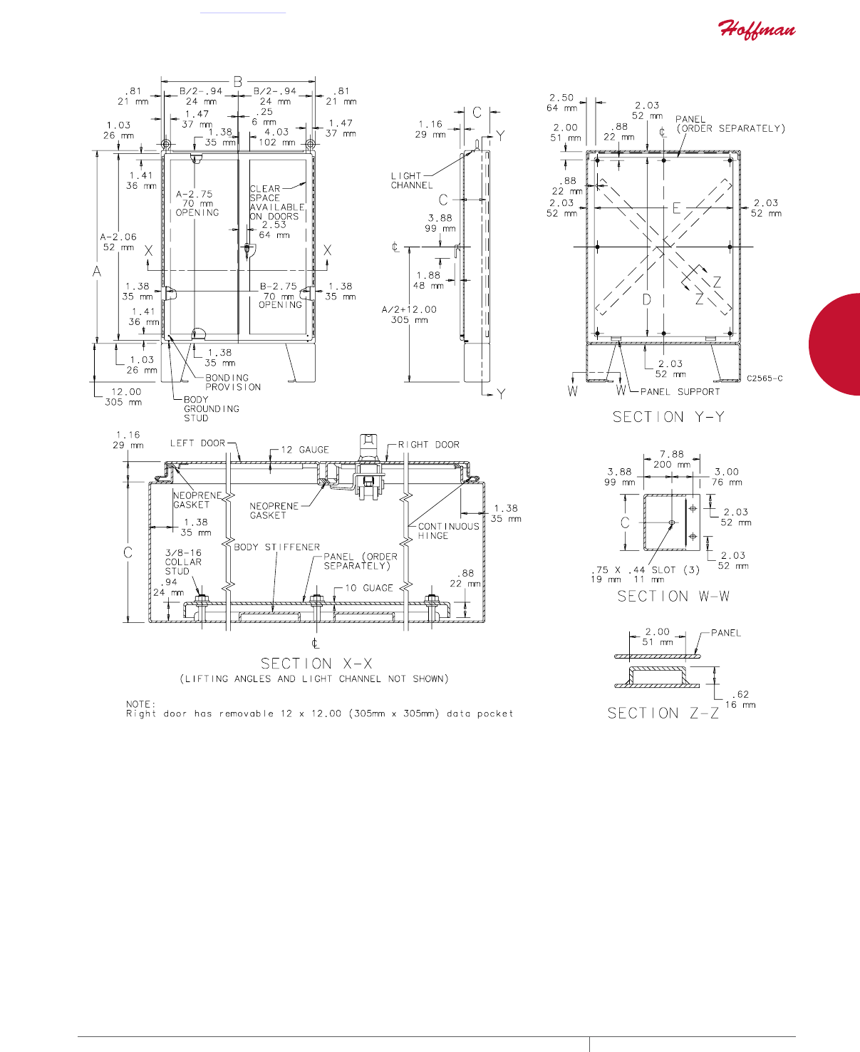cutouts are available; consult Hoffman for ordering information.