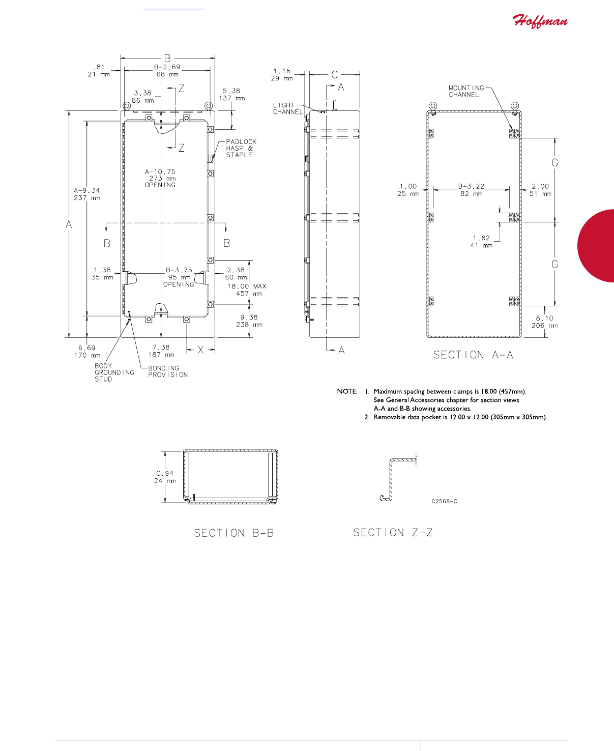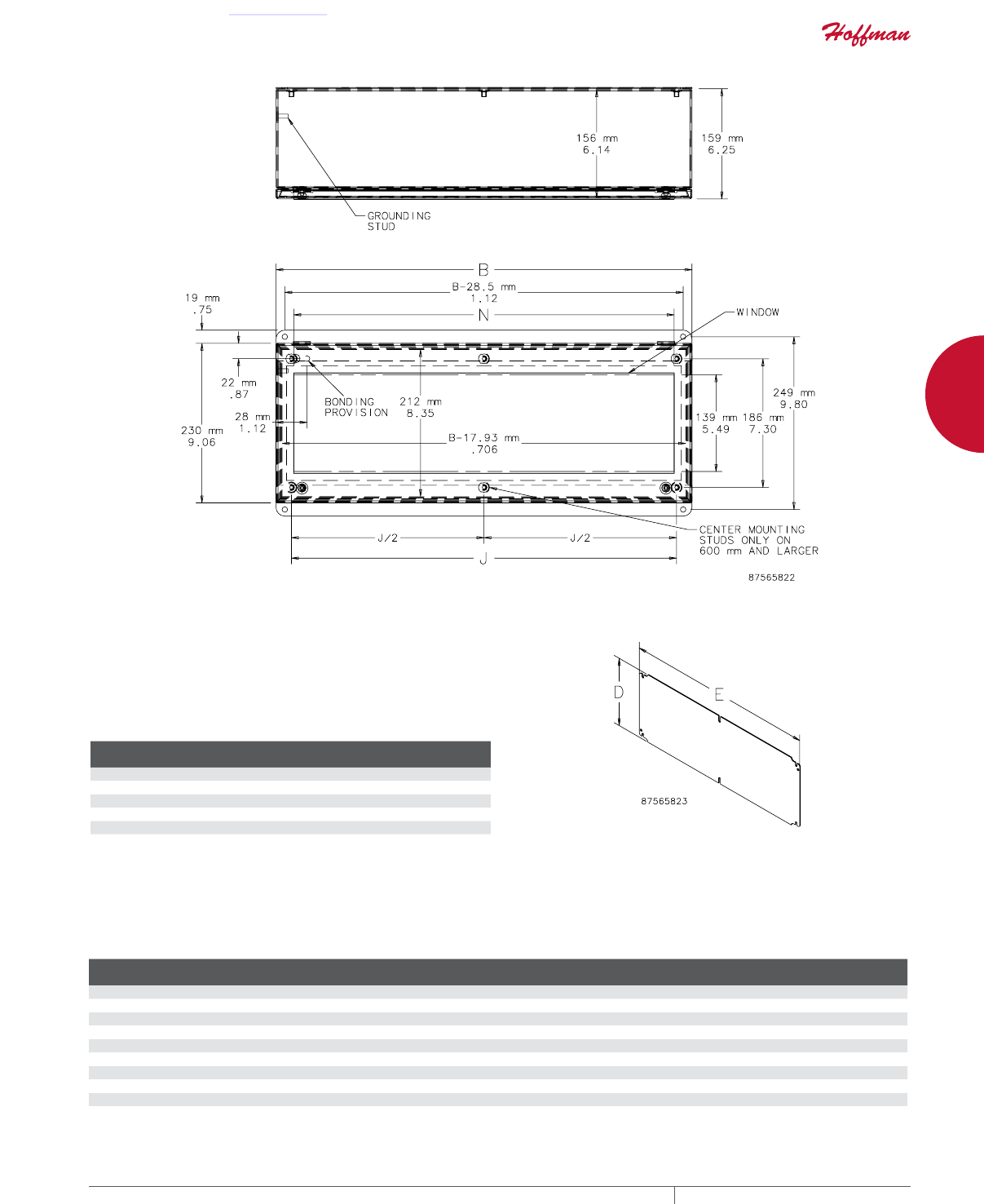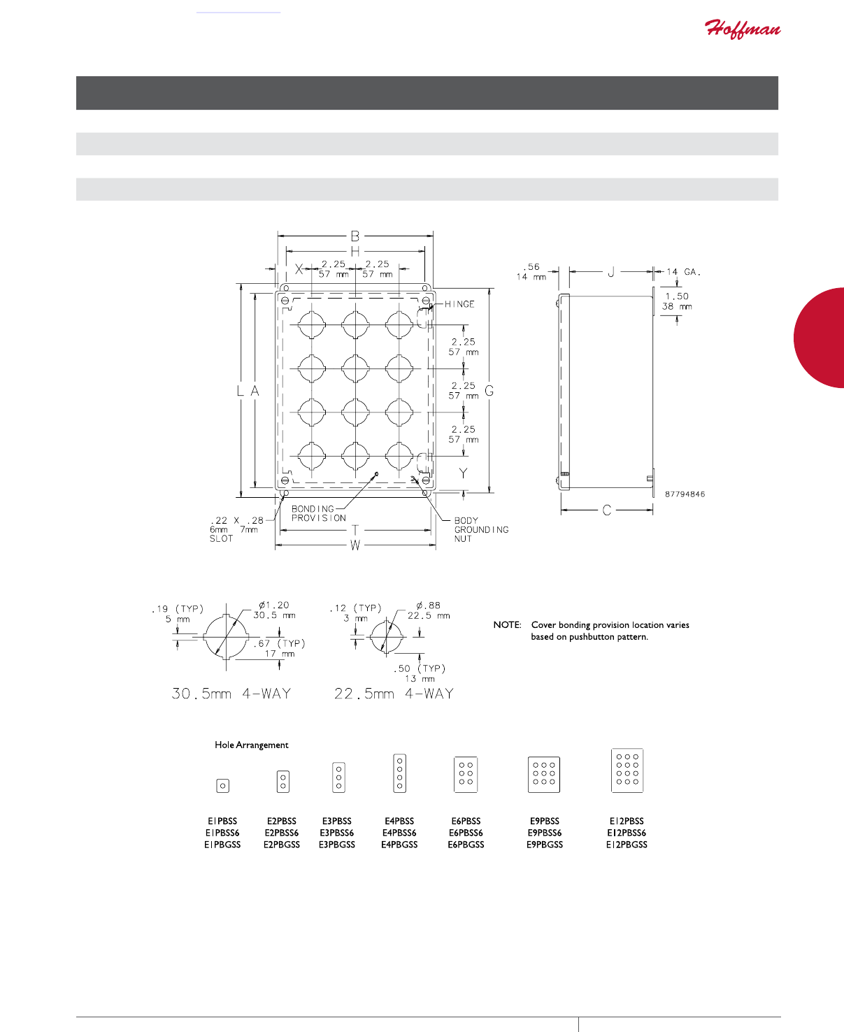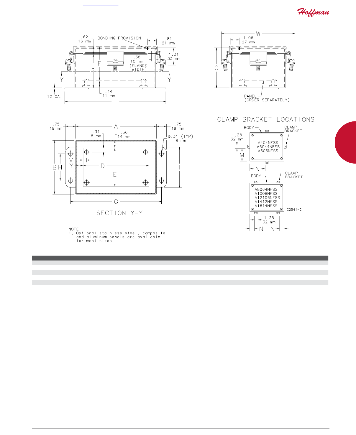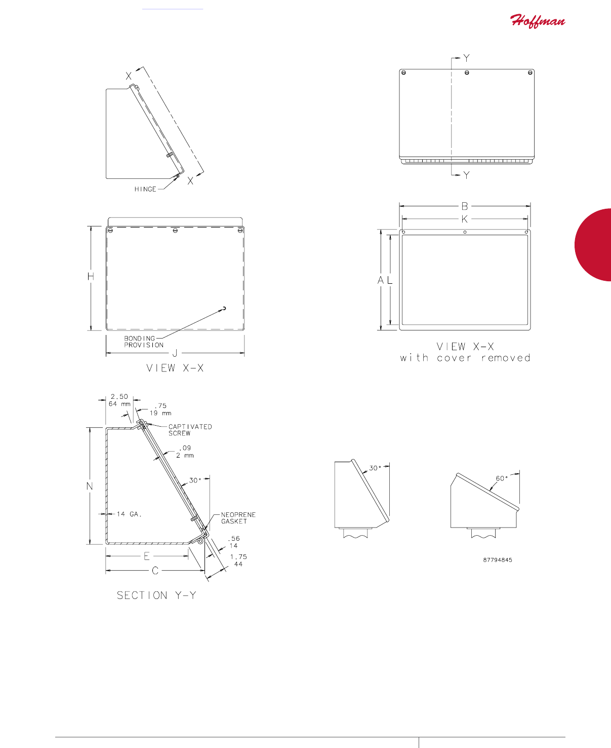 cutouts are available; consult Hoffman for ordering information.