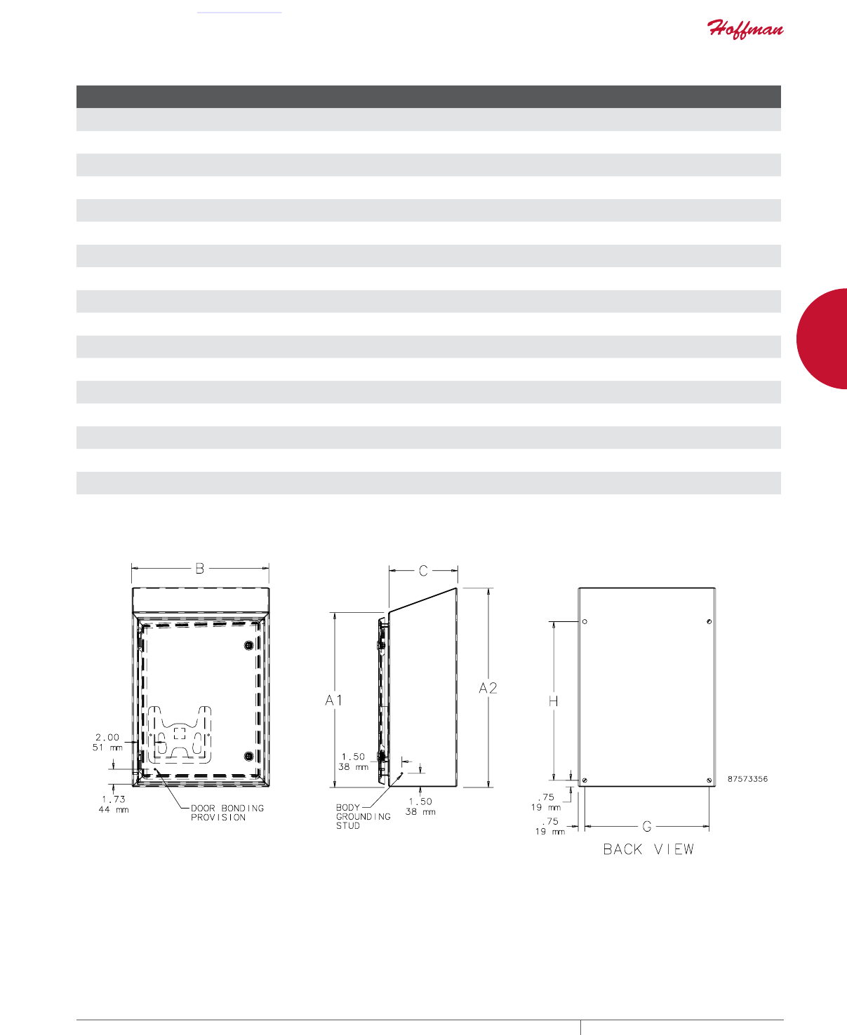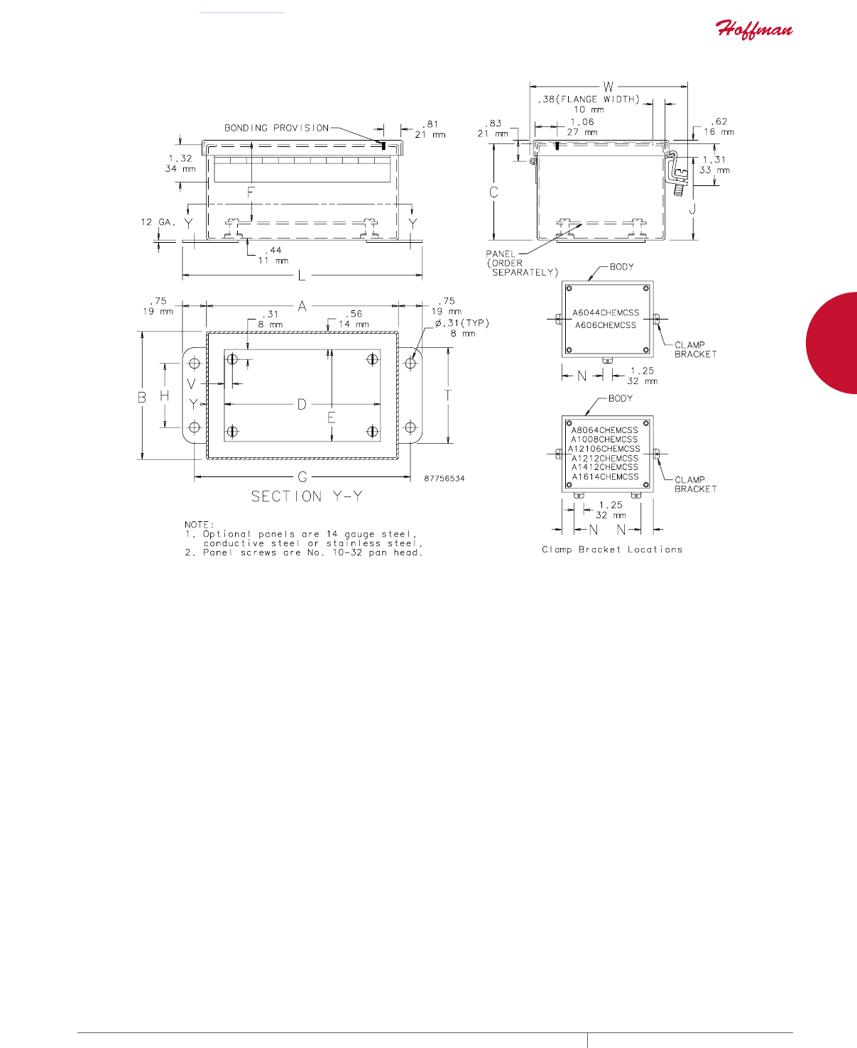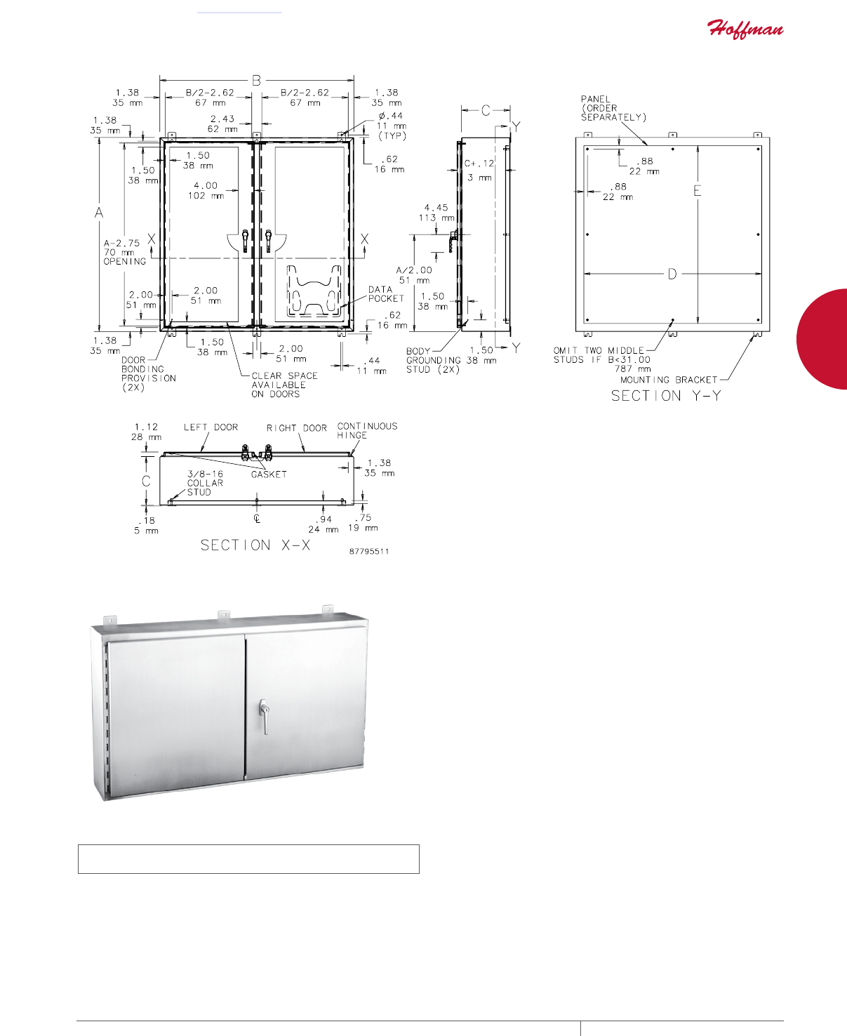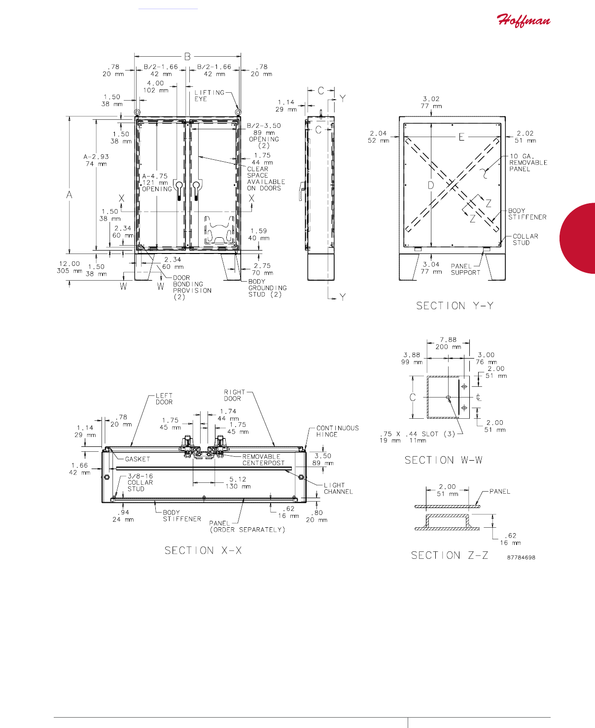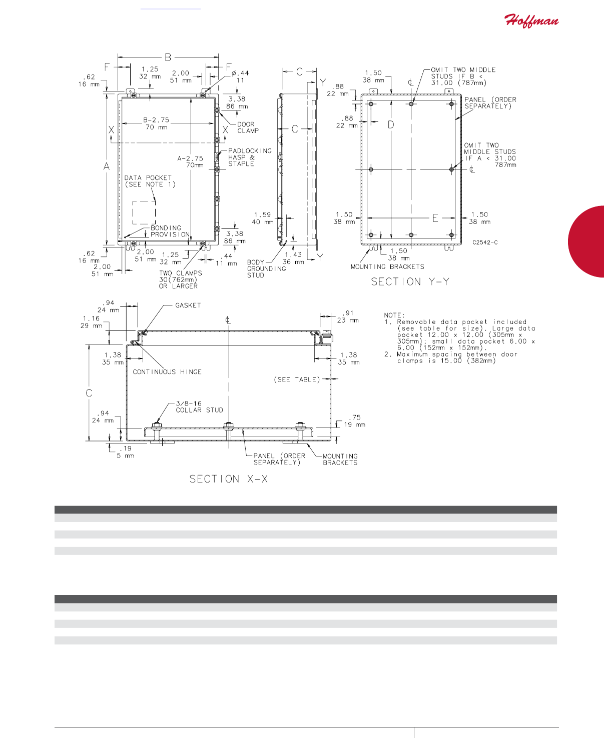 cutouts are available; consult Hoffman for ordering information.