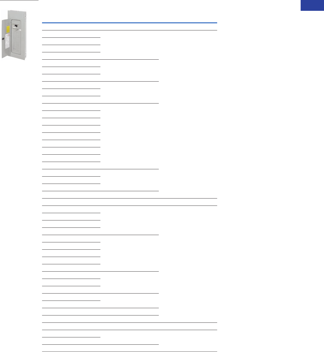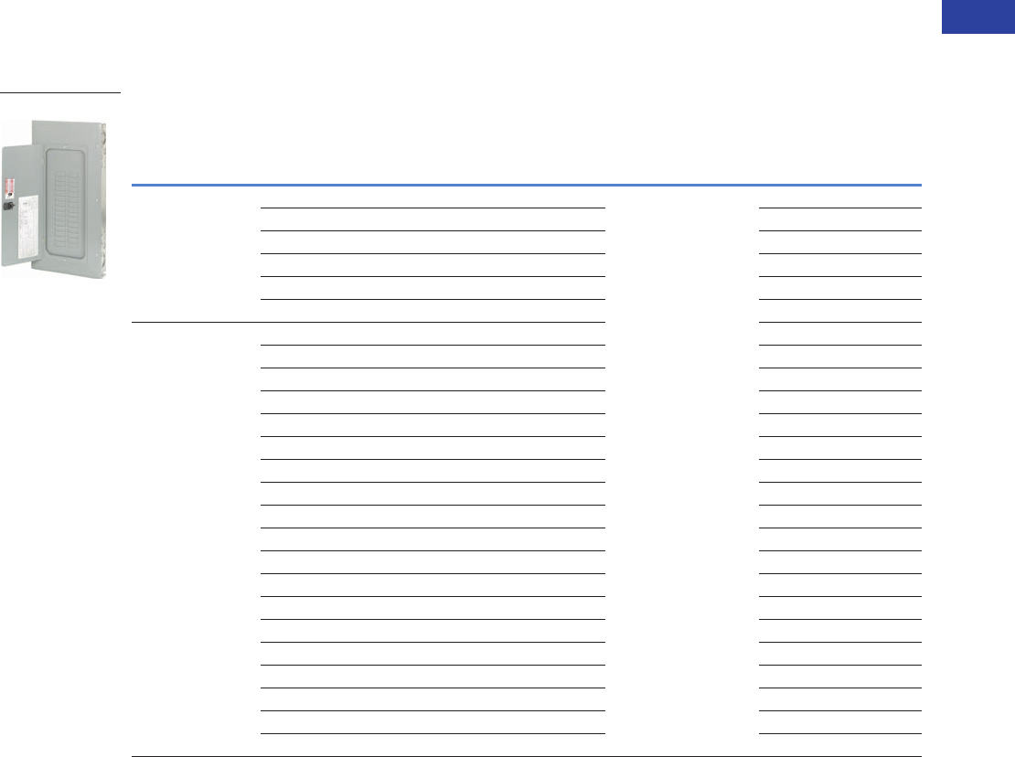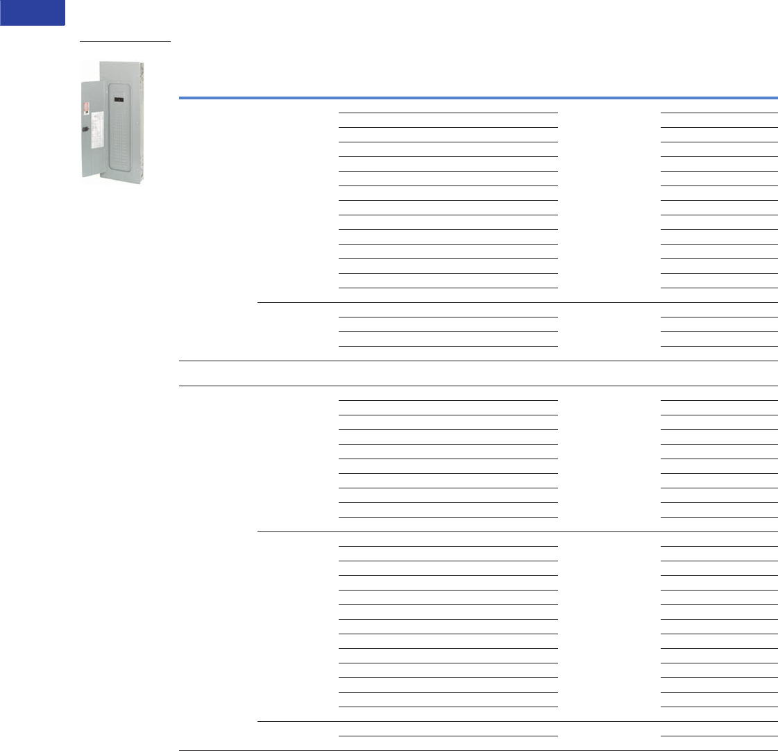 panel is the main circuit breaker rating when used as service entrance equipment. Ground bar kits priced separately. See Page V1-T1-66.