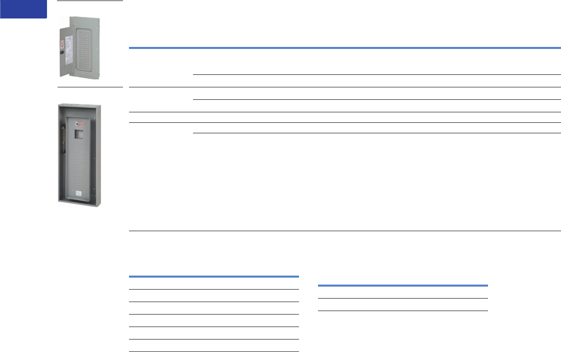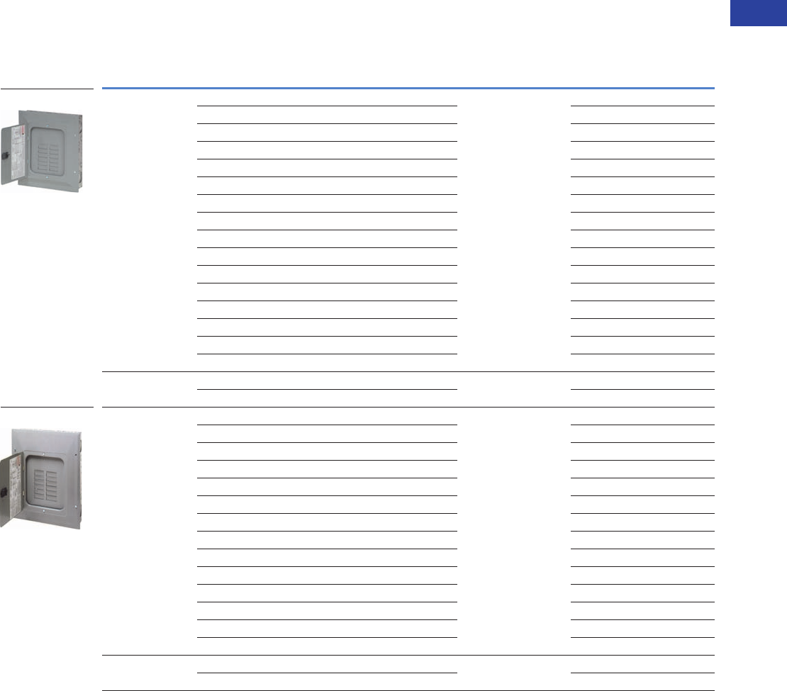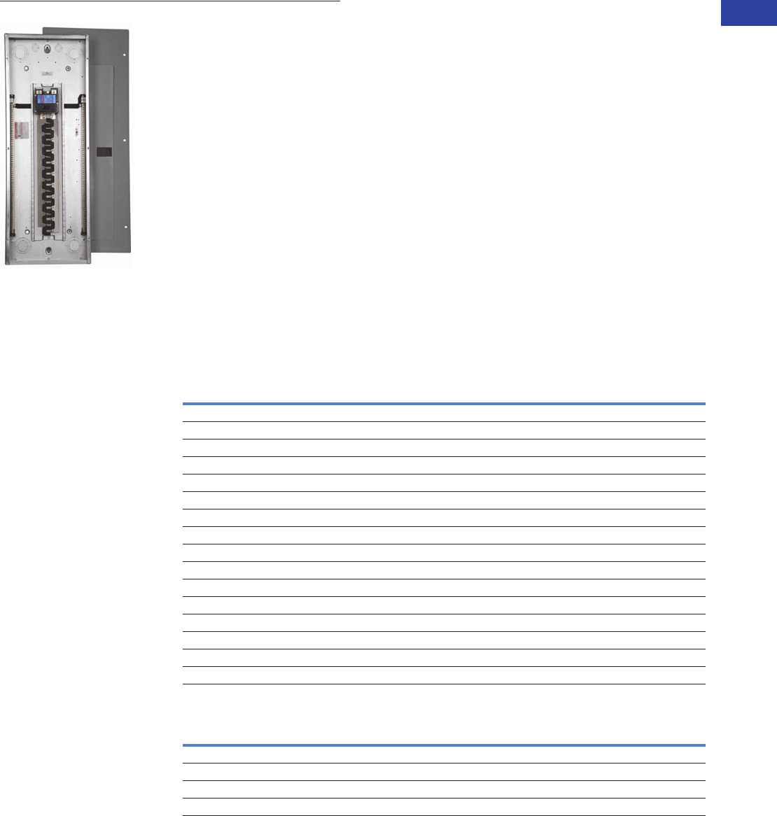 panel is the main circuit breaker rating when used as service entrance equipment. Ground bar kits priced separately. See Page V1-T1-66.
