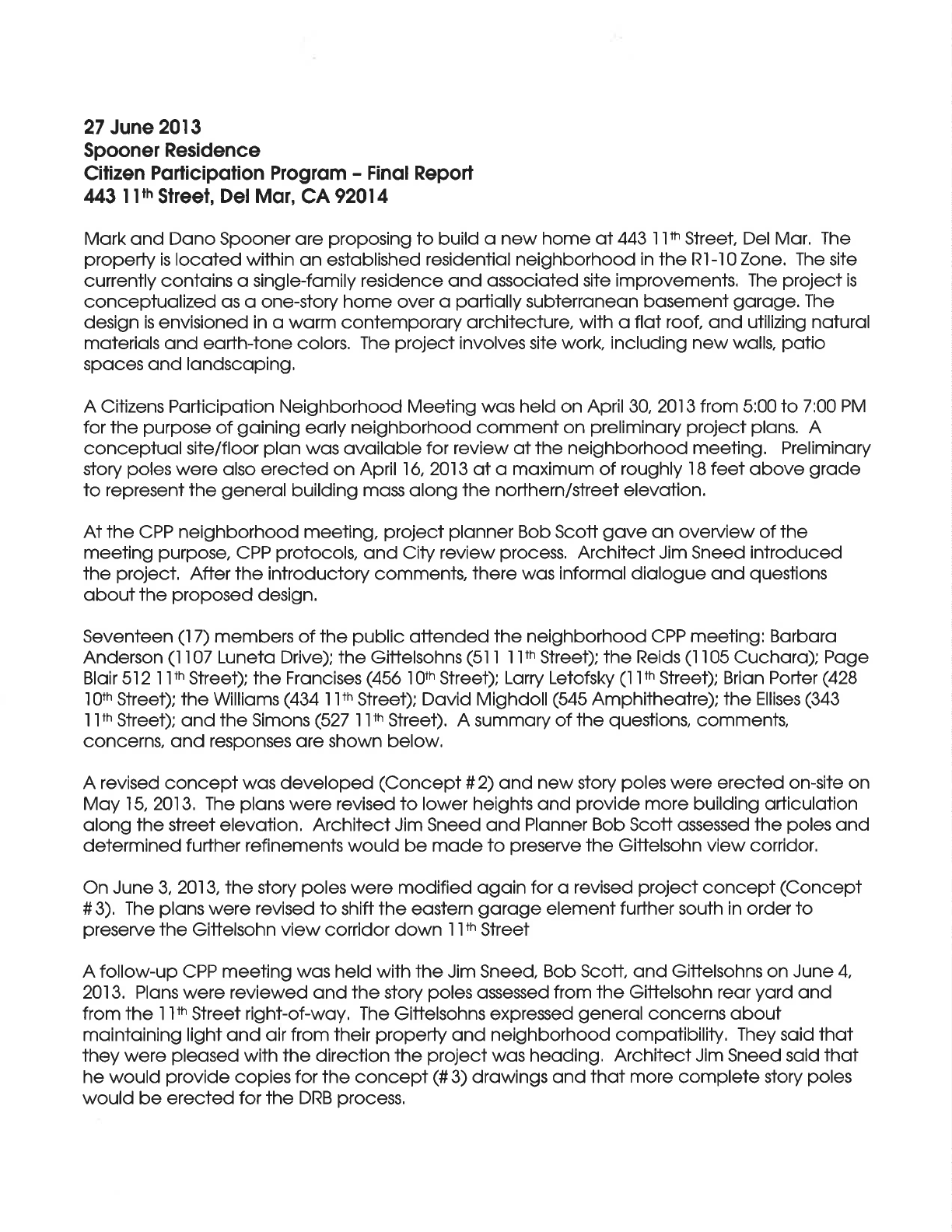 We are grateful that there will not be a new Del Mar "mansion" and feel that the proposed house