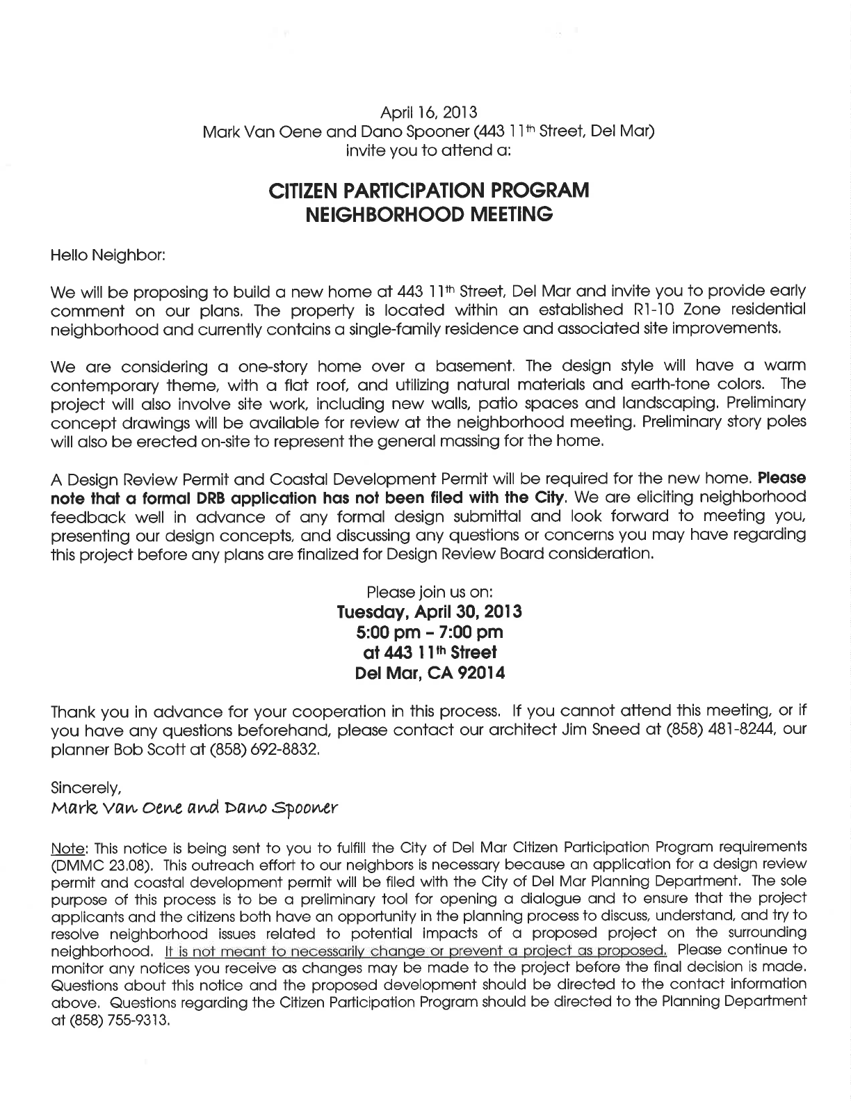 Note: This notice is being sent to you to fulfill the City of Del Mor Citizen Porticipotion Progrom requirements