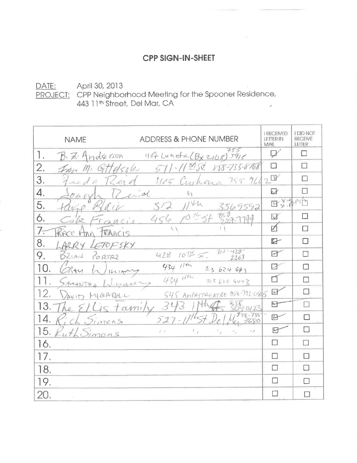 PROJECT; CPP Neighborhood Meeling for the Spooner ldesiderìce,
