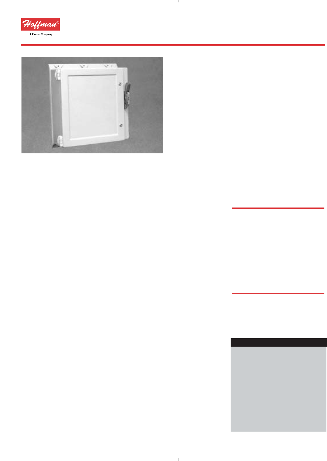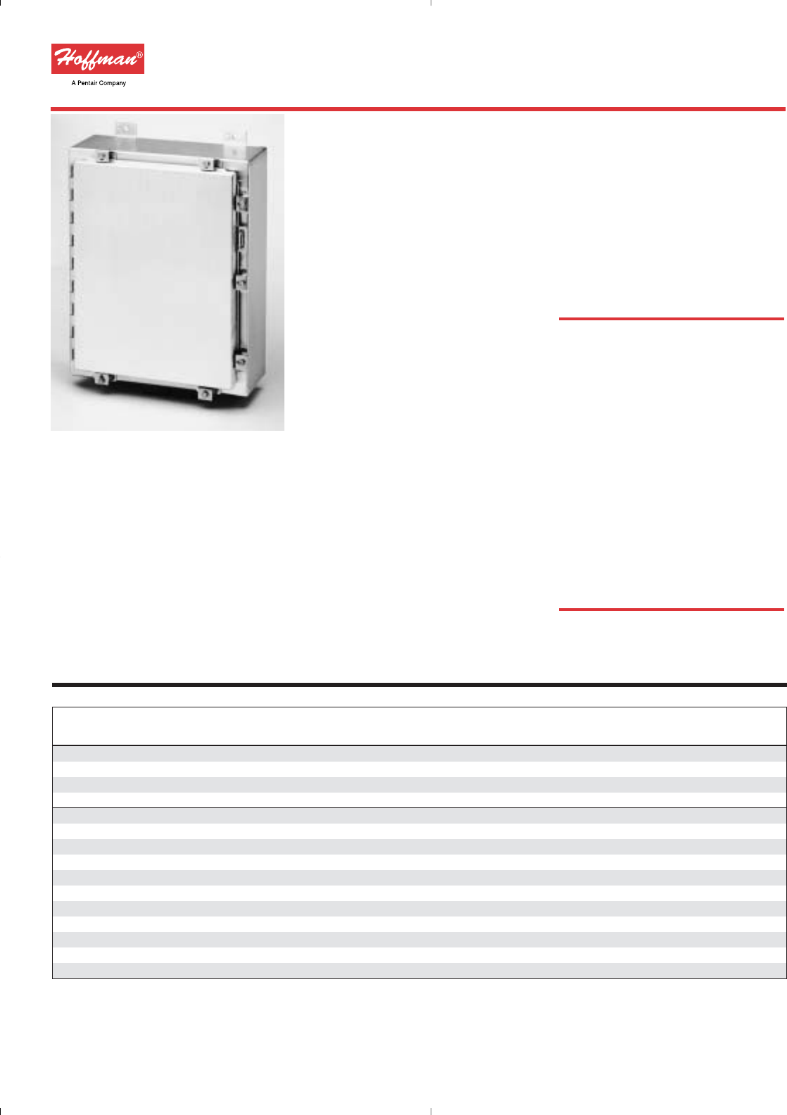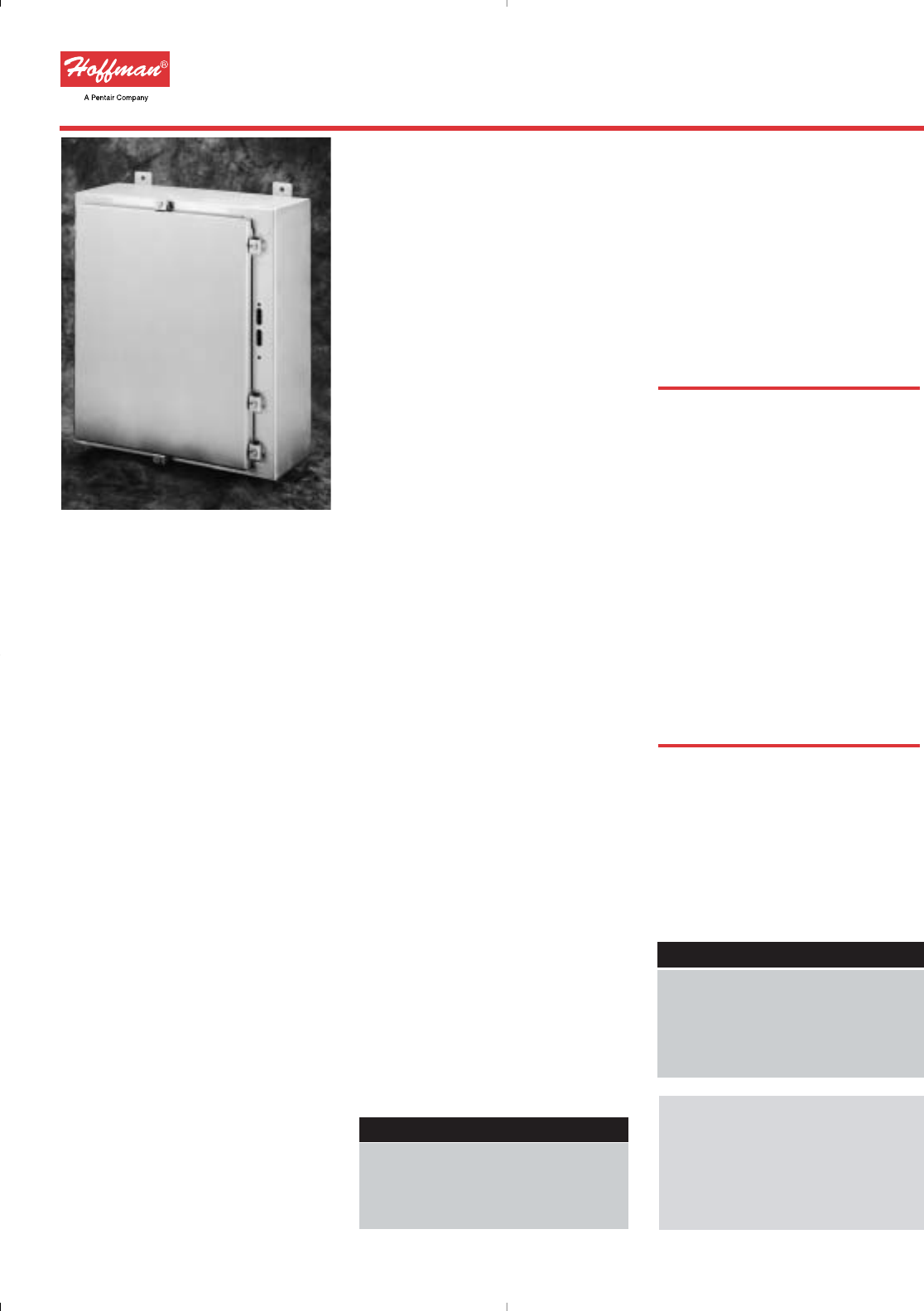 Data subject to change without notice ☎763 422 2211 FAX 763 422 2600 ©2003 Hoffman Enclosures Inc.