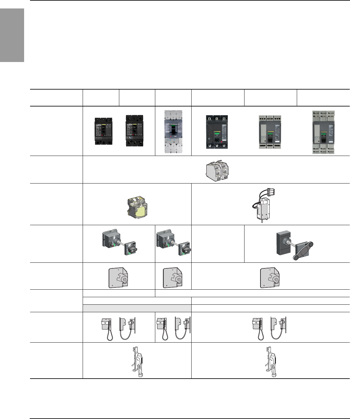 Table 8: Common Features and Accessories (PowerPact Circuit Breakers)