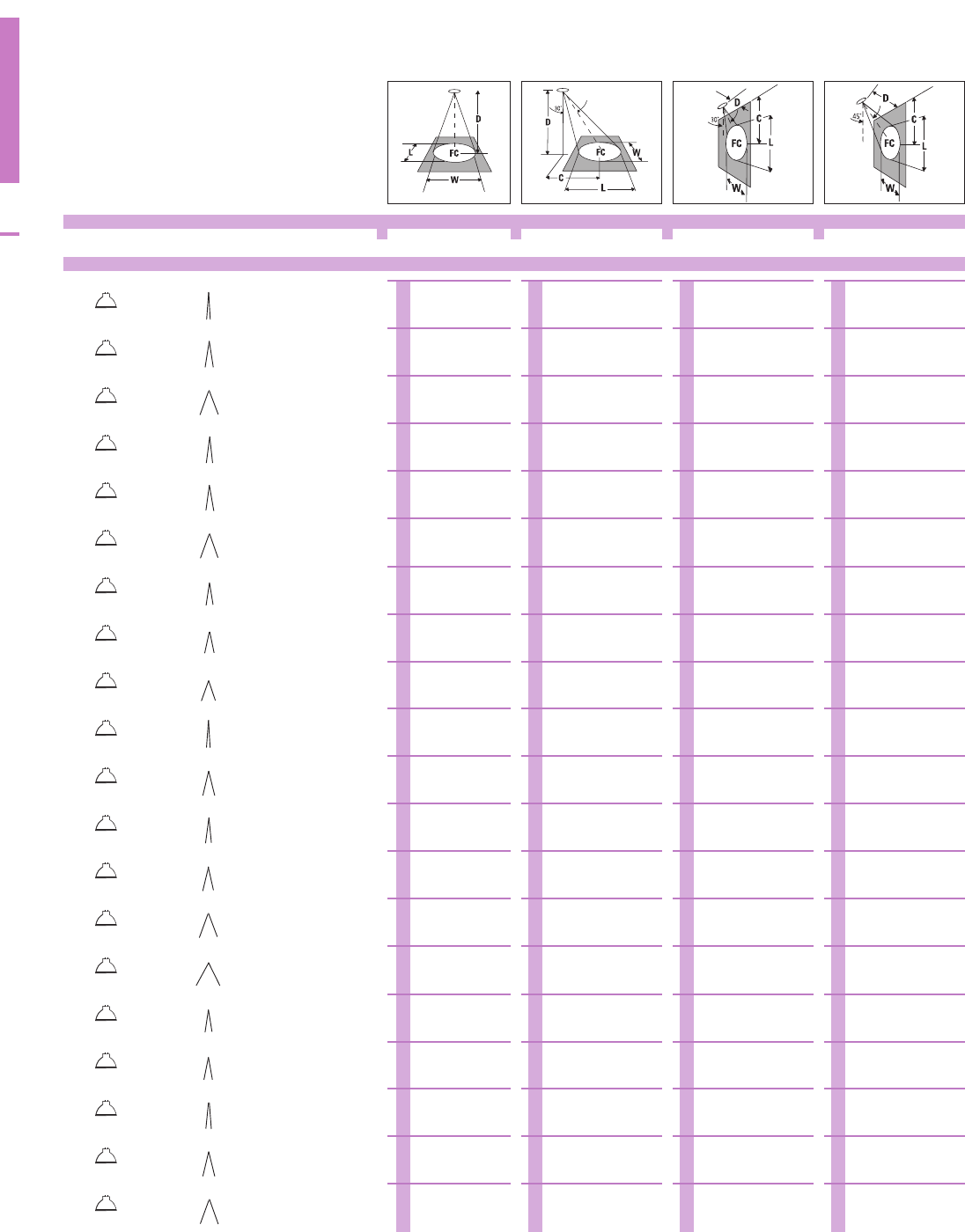 Footcandle(FC)valuesareinitialandareatthecenterofthebeam,30"abovethe