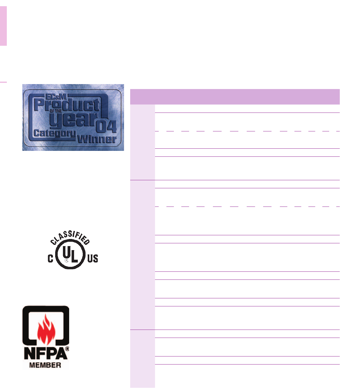 Lighting specifications