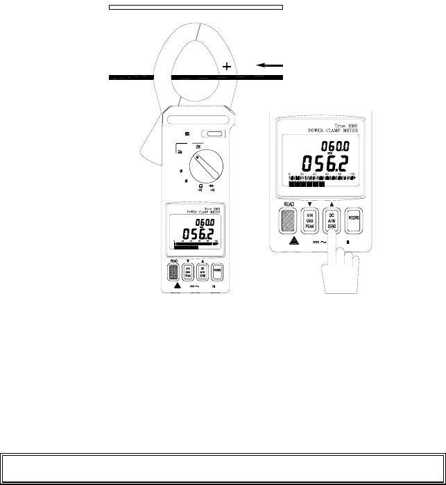 2. For DC, press and hold the ZERO button until a beep is heard to zero the reading; the LCD will