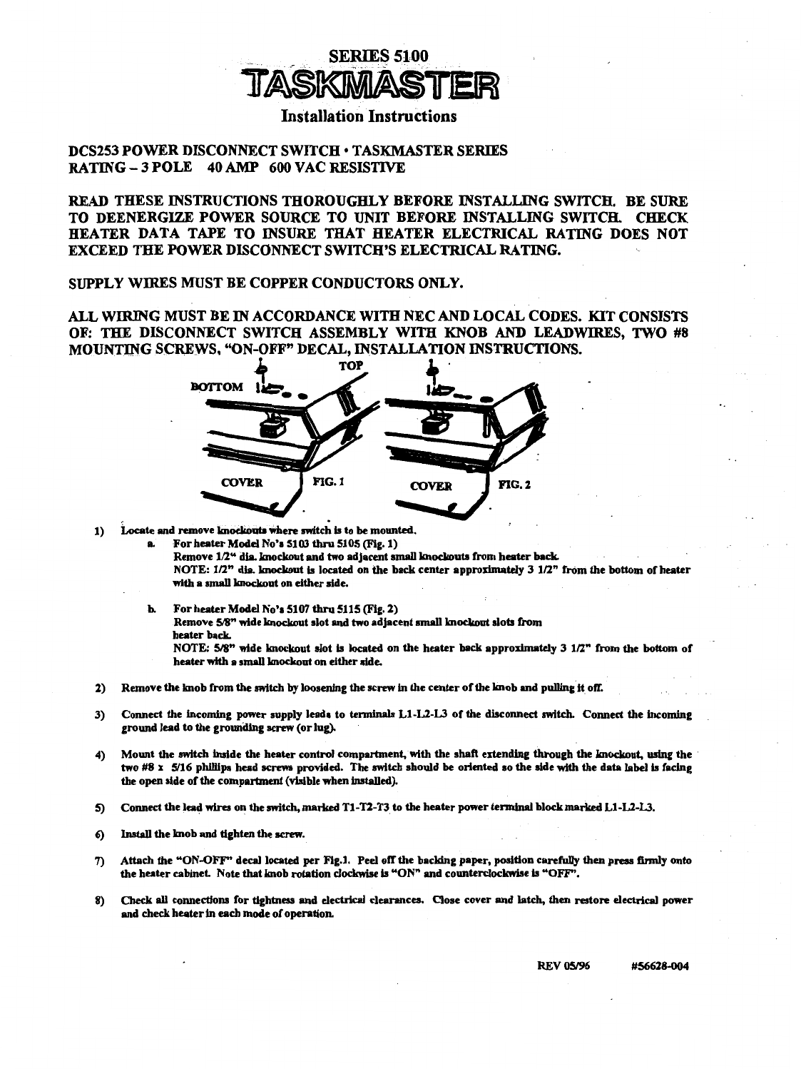 2.) Remove appropriate knockouts for switch being used. Refer to Fig. 1.