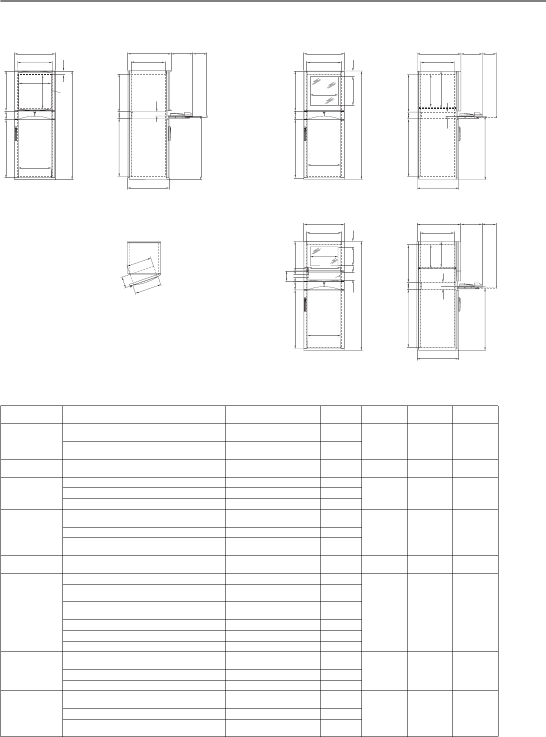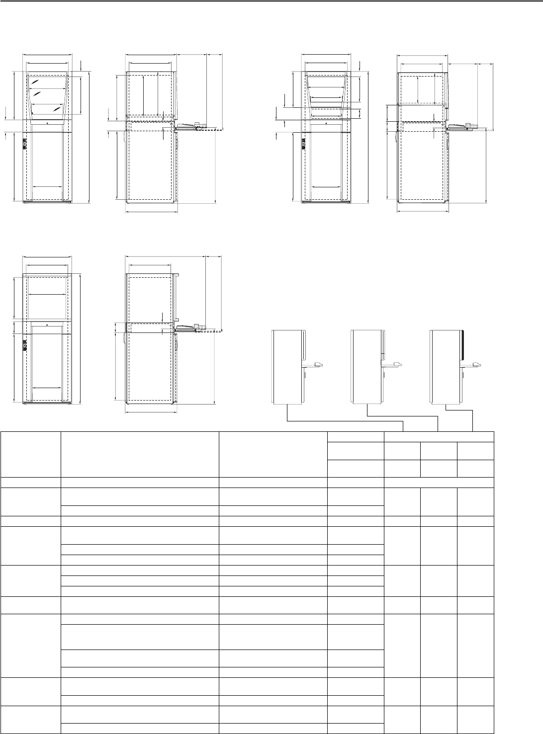 height (H) x width (W) x depth (D) and the manufacturer/model.