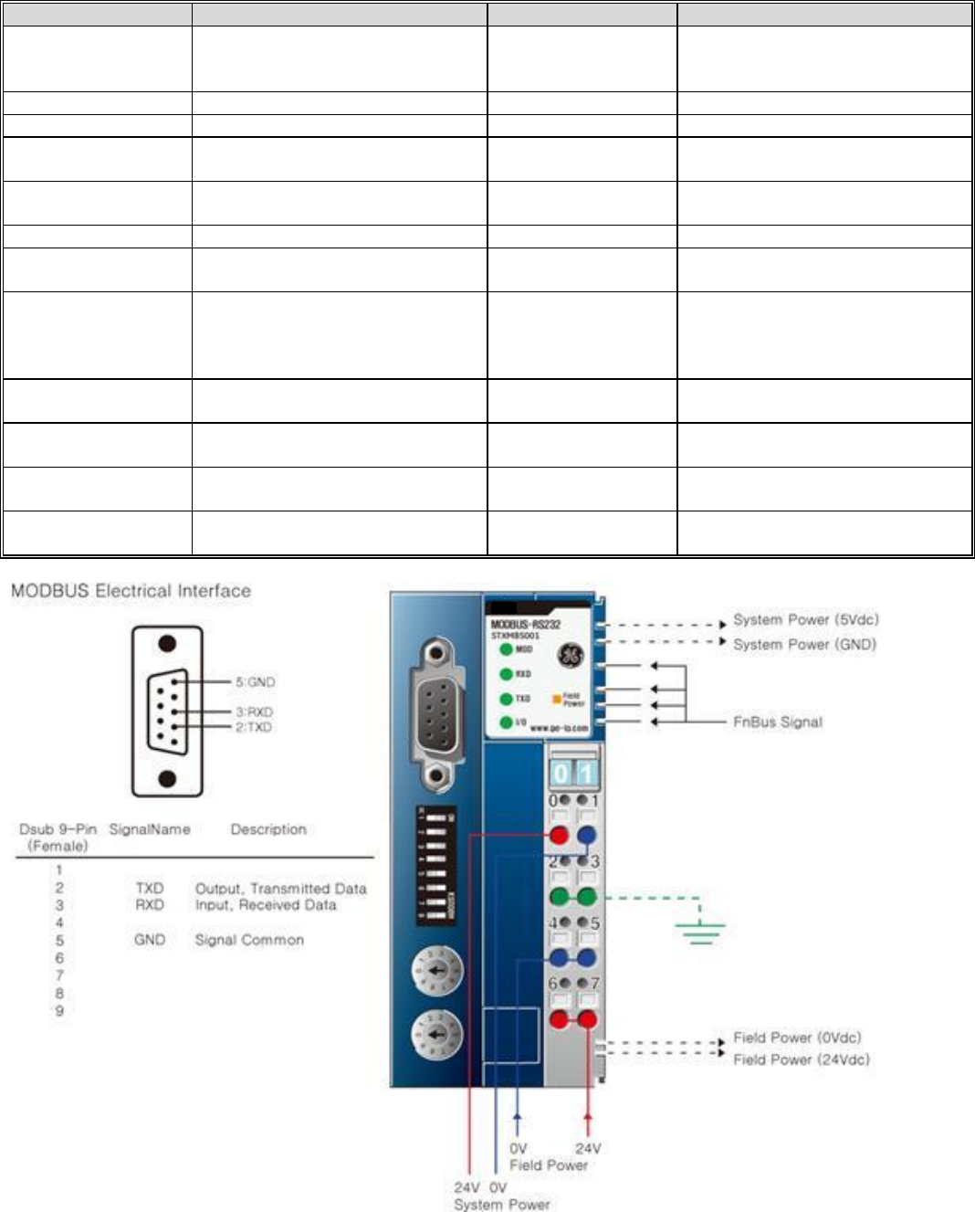 Modbus Serial RS-232 Specifications – STXMBS001