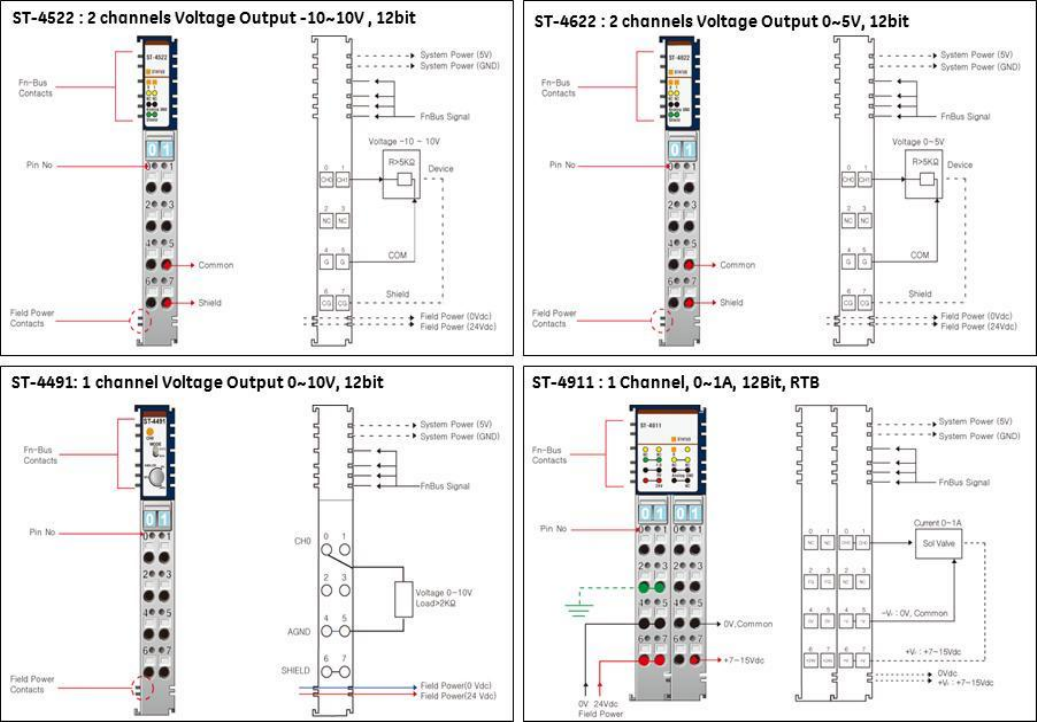 RSTi 2 channels analog output module, 4-20ma current (Part Number ST-4212)