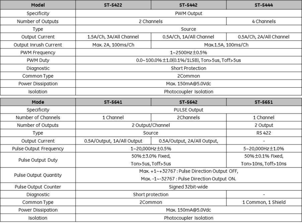 Motion Module Specifications – PWM and Pulse Train Outputs