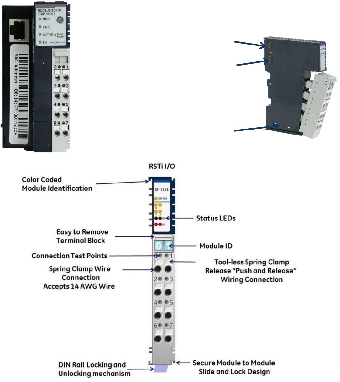 module to the next. The RSTi mechanical design provides integrated mechanical interlocking for securing
